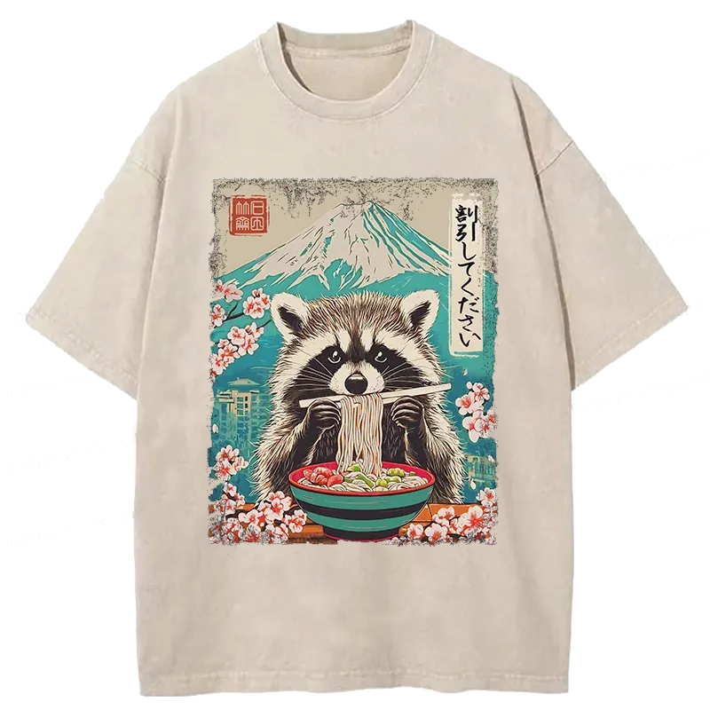 Tokyo-Assassin Ramen-obsessed Raccoon Washed T-Shirt