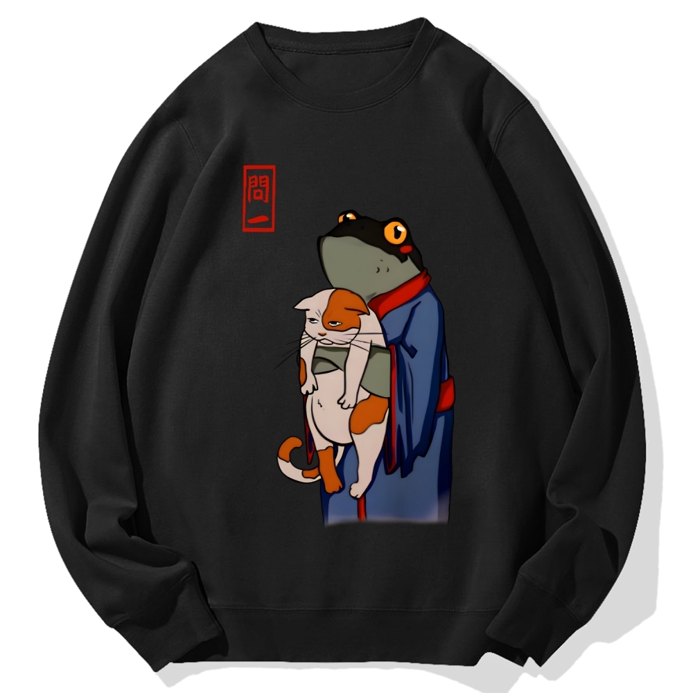 Tokyo-Assassin Frog and Cat Cotton Sweatshirt