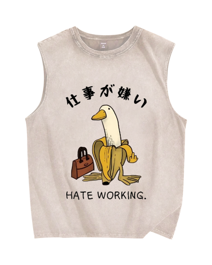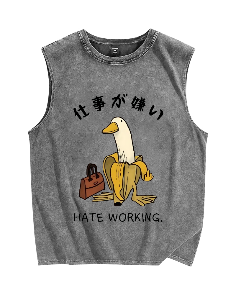 Tokyo-Assassin Hate Working Vintage Distressed Washed Tank Top