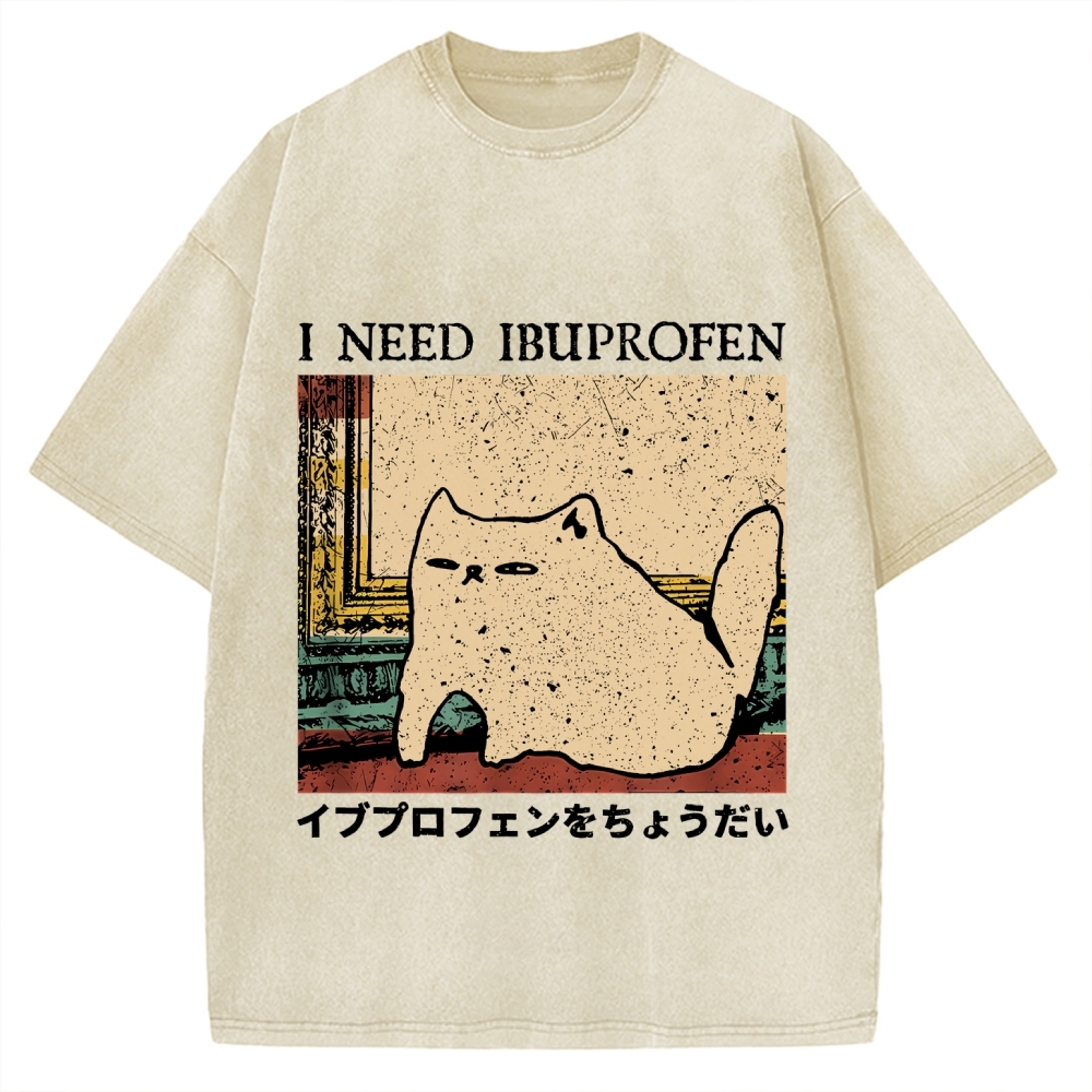 Tokyo-Assassin I Need Ibuprofen Cat Meme Vintage Washed T-shirt