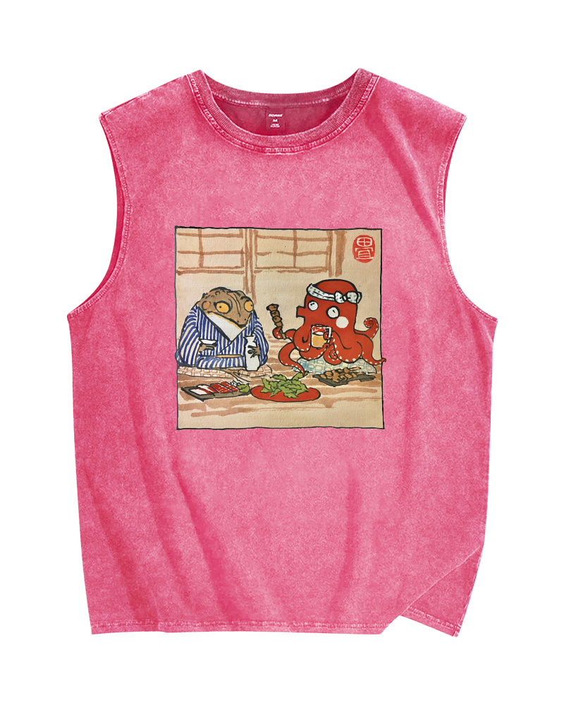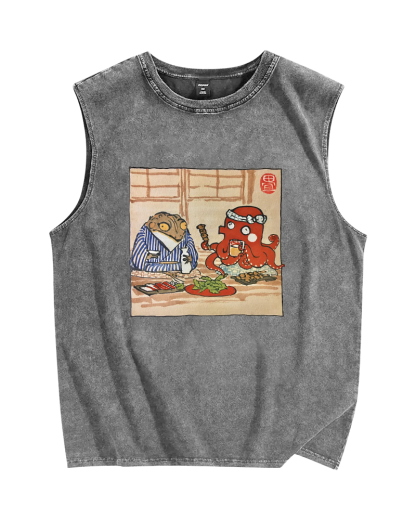 Tokyo-Assassin Monster Gathering Funny Vintage Distressed Washed Tank Top