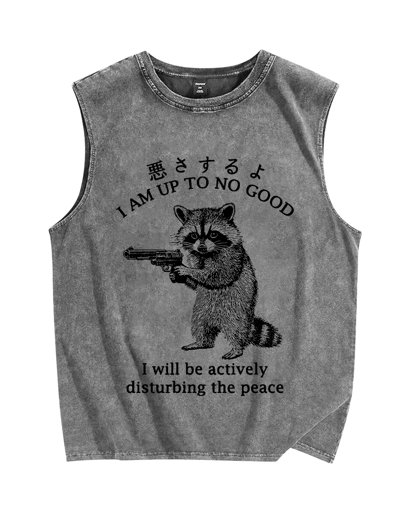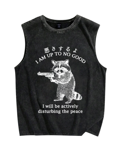 Tokyo-Assassin Raccoon Disturbing The Peace Vintage Distressed Washed Tank Top