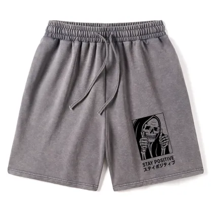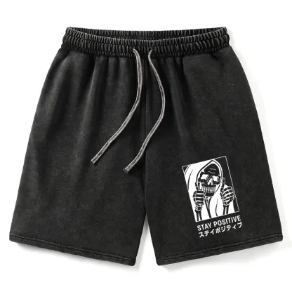 Tokyo-Assassin Stay Positive Skeleton Washed Shorts
