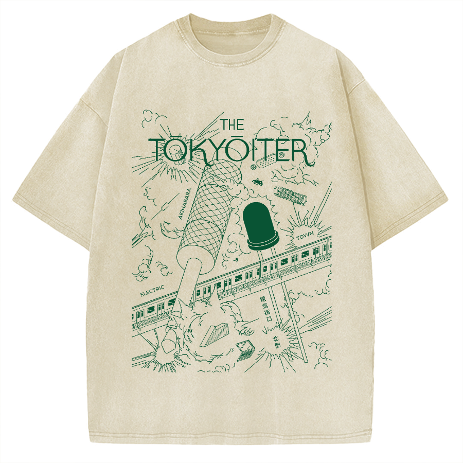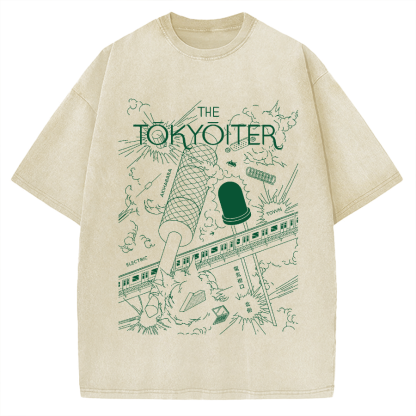 Tokyo-Assassin Tokyo Train & Tower Vintage Washed T-shirt