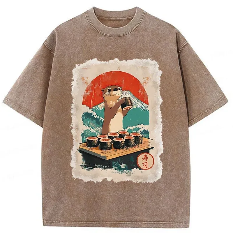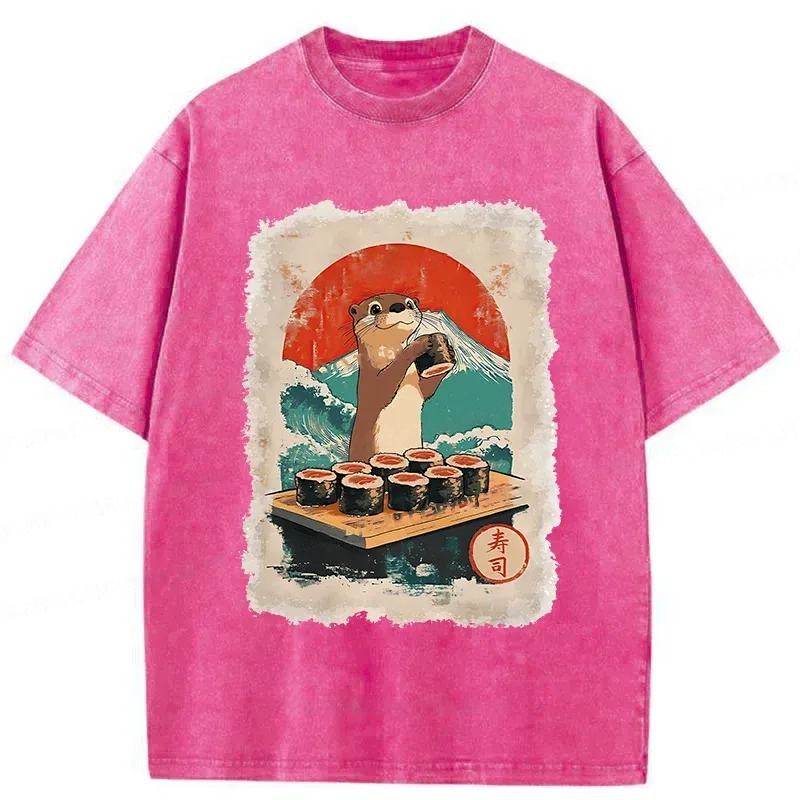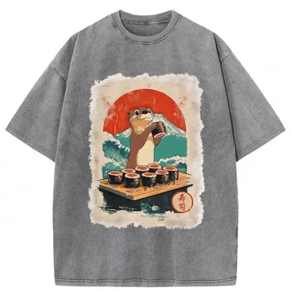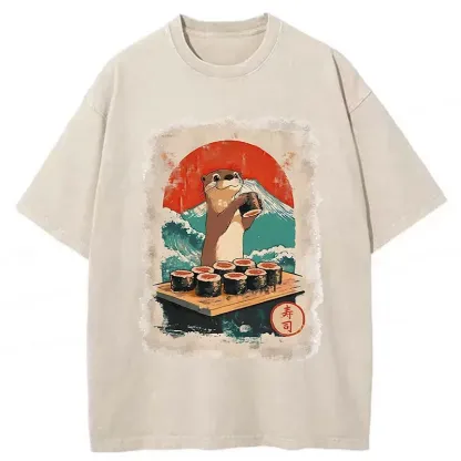 Tokyo-Assassin Otter Eating Sushi Washed T-Shirt