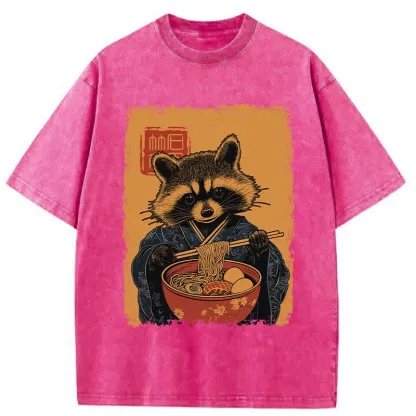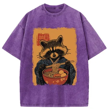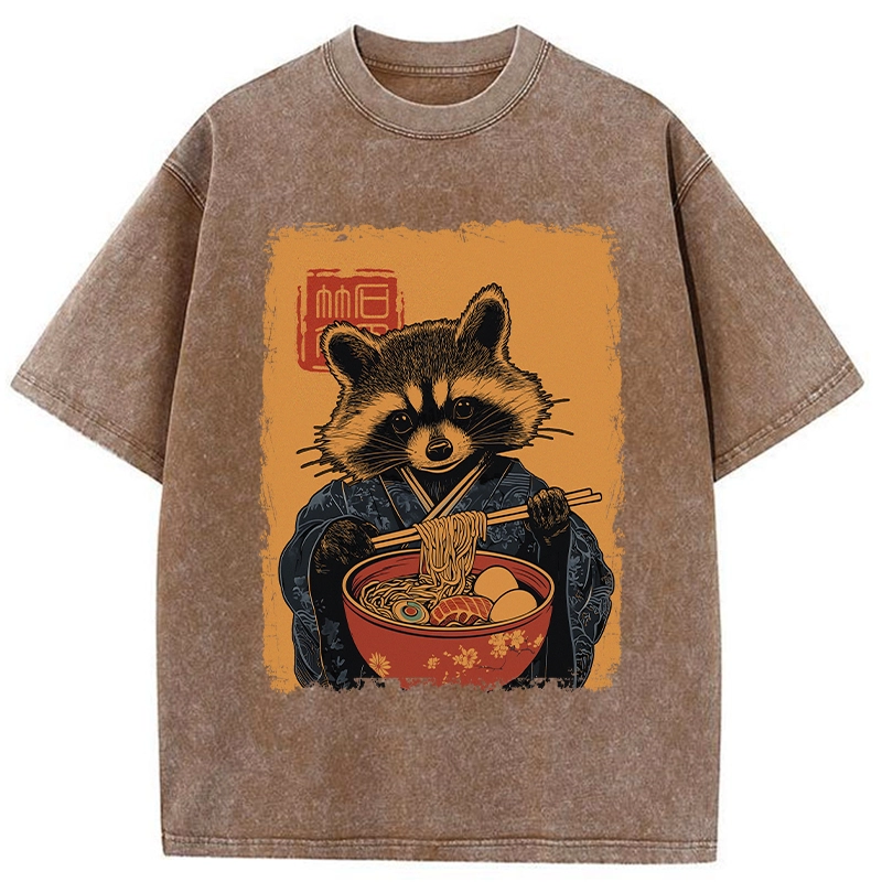 Tokyo-Assassin Ramen-obsessed Raccoon Washed T-Shirt