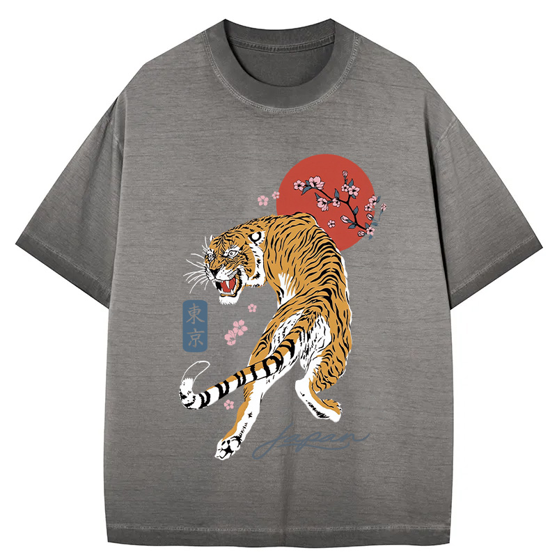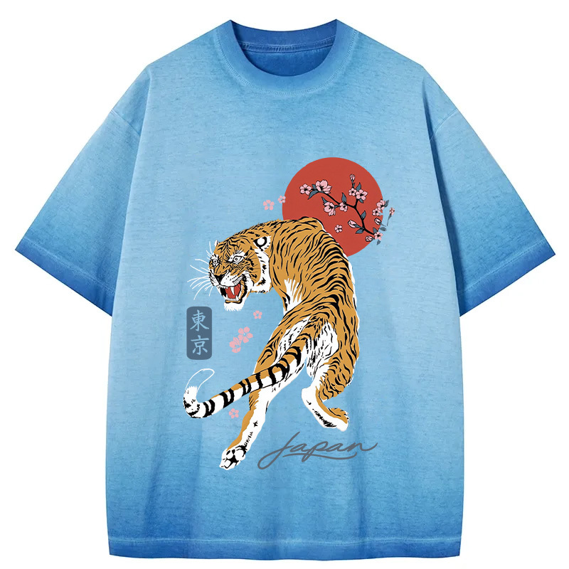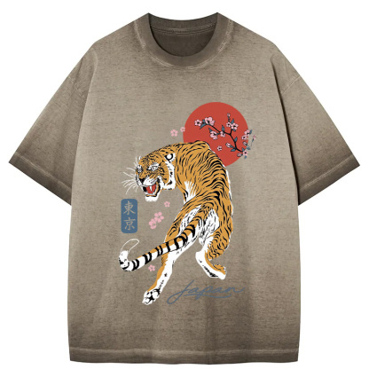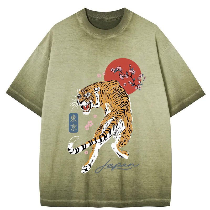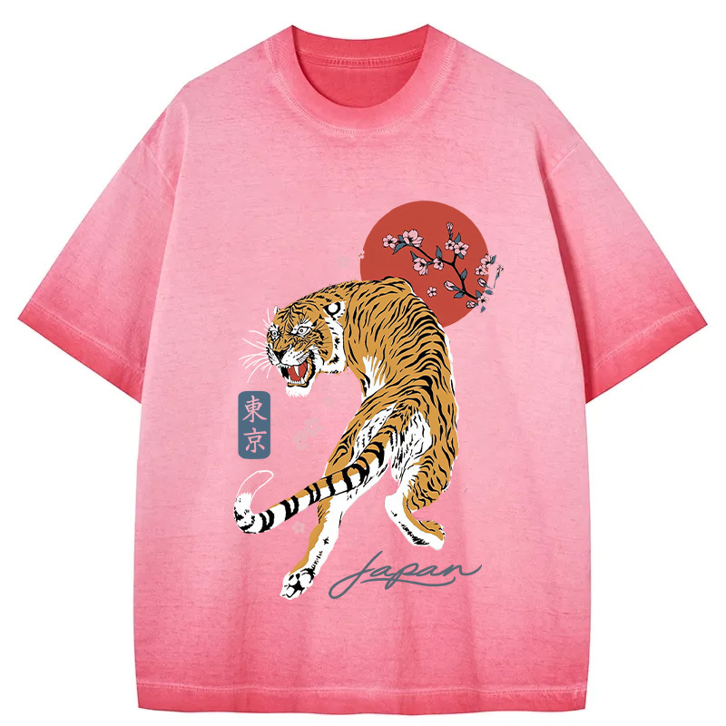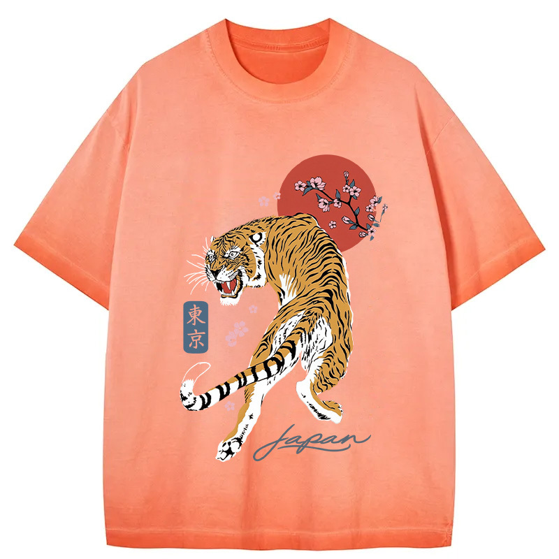 Tokyo-Assassin Tiger Blossom Japanese Sakura Gradient Washed T-Shirt