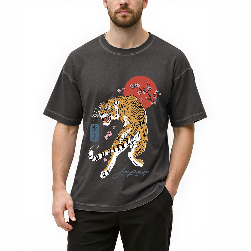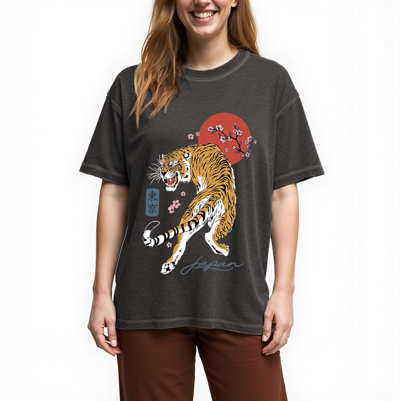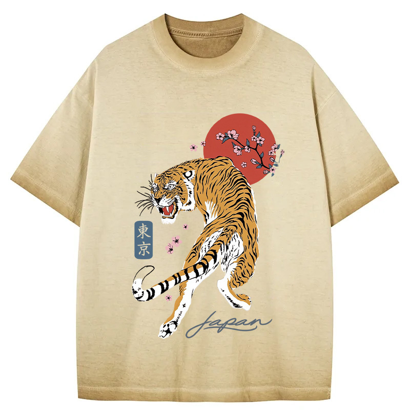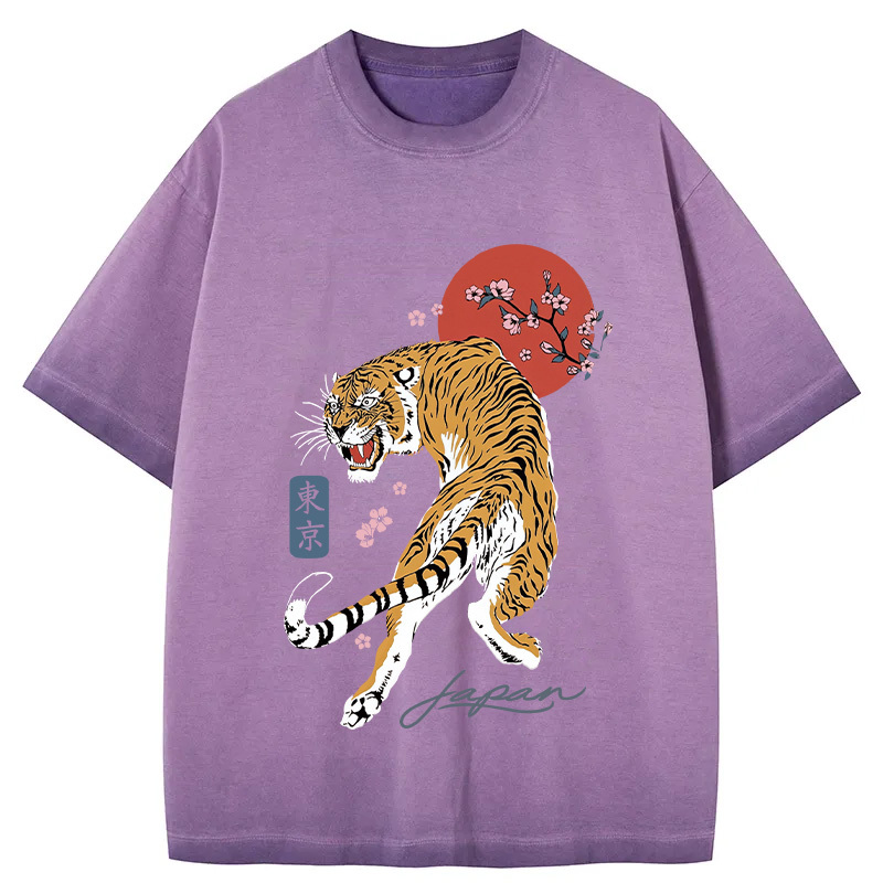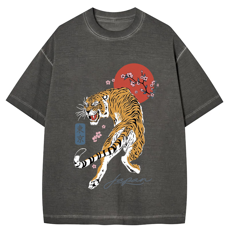 Tokyo-Assassin Tiger Blossom Japanese Sakura Gradient Washed T-Shirt