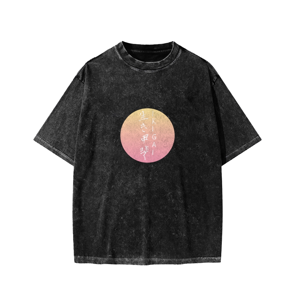 Tokyo-Assassin Hokkaido Wave Red Sun Front And Back Printing Washed T-shirt