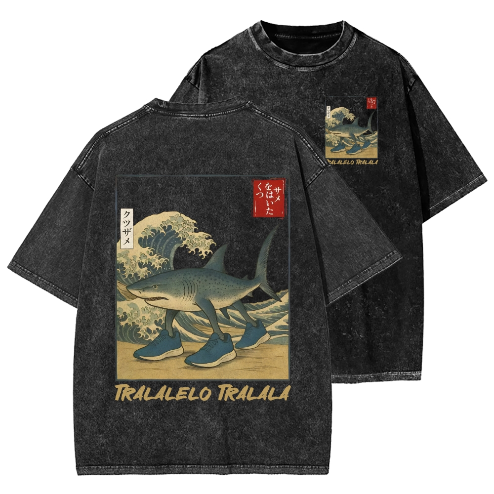 Tokyo-Assassin Capybara Wave Front And Back Printing Washed T-shirt