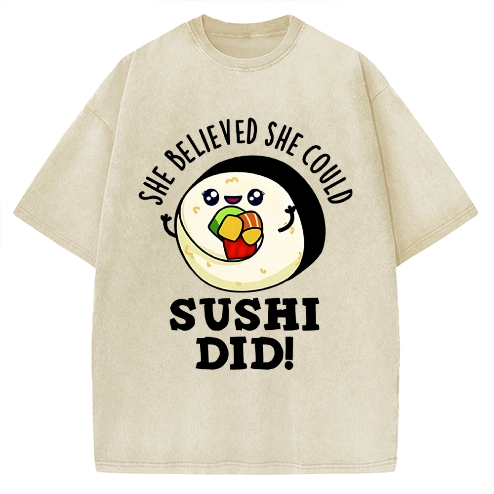 Tokyo-Assassin Funny Sushi Sunbathing Washed T-Shirt