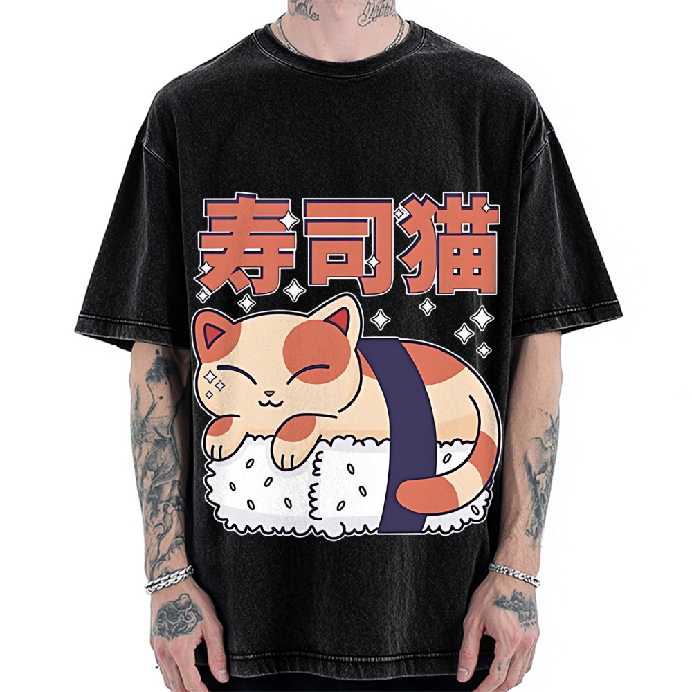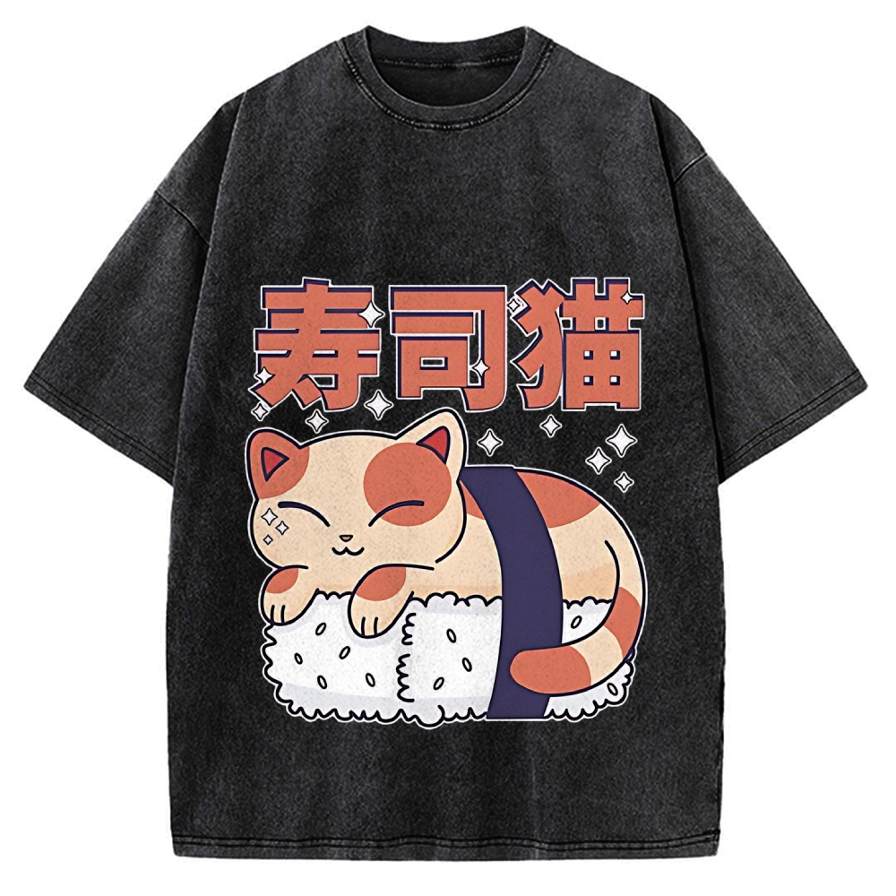 Tokyo-Assassin Sushi Cat Vintage Washed T-shirt 2507001356