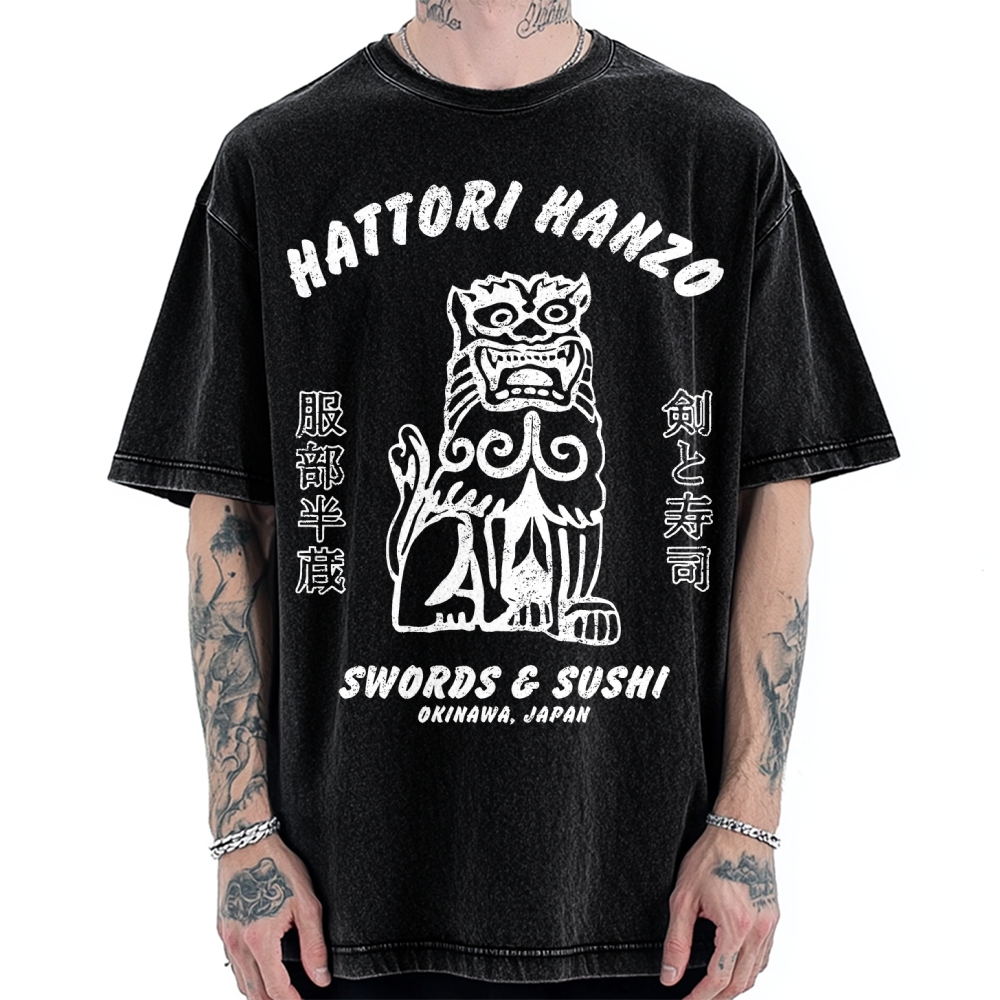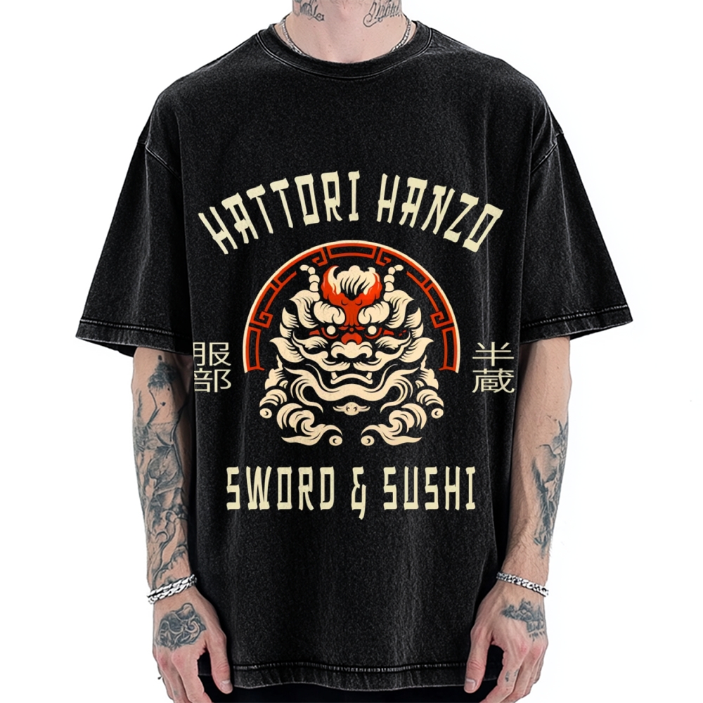 Tokyo-Assassin Hattori Hanzo Swords & Sushi Front And Back Printing Washed T-shirt