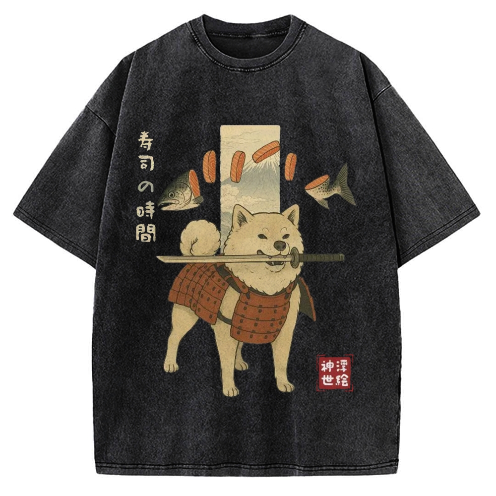 Tokyo-Assassin Sushi Salmon Lover Samurai Doge Vintage Washed T-shirt