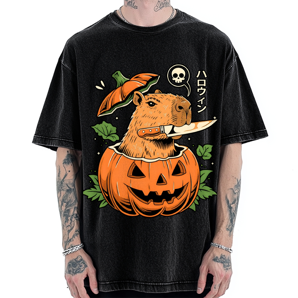 Tokyo-Assassin Pumpkin Capybara Slayer Vintage Washed T-shirt