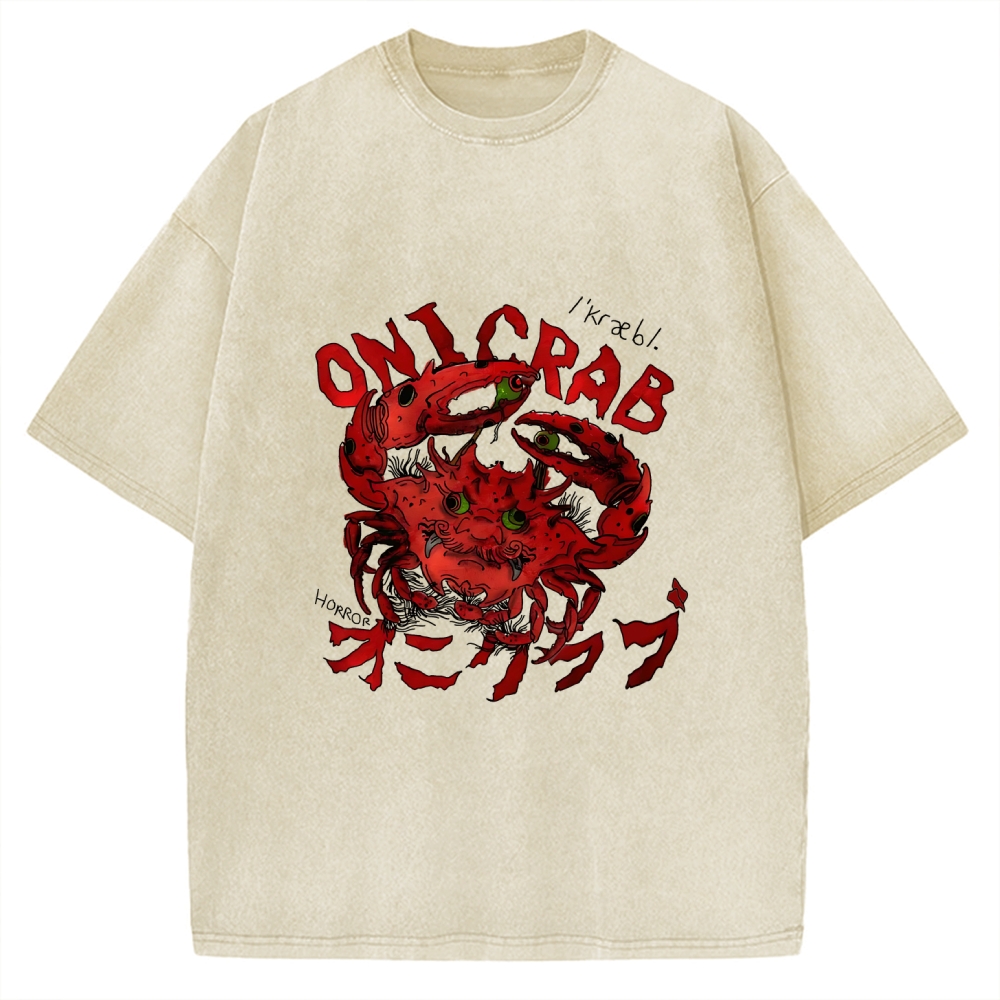 Tokyo-Assassin Evil Horror Oni Crab Yokai Japanese Vintage Washed T-shirt