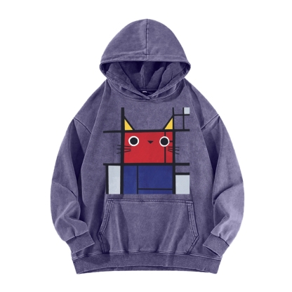 Tokyo-Assassin Abstract Art Cat Vintage Washed Hoodie