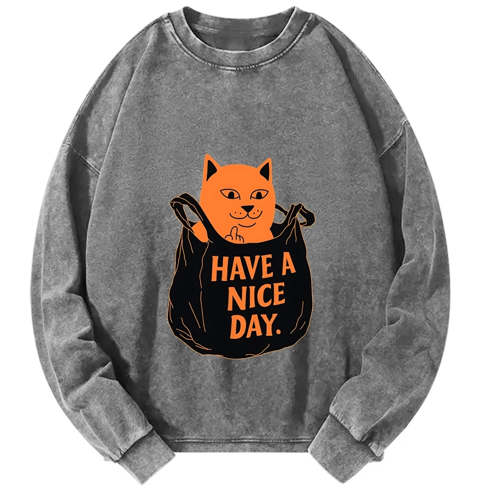 Tokyo-Assassin Cat in my bag have a nice day Vintage Washed Sweatshirts