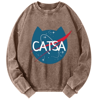 Tokyo-Assassin CATSA Logo Cat Vintage Washed Sweatshirts