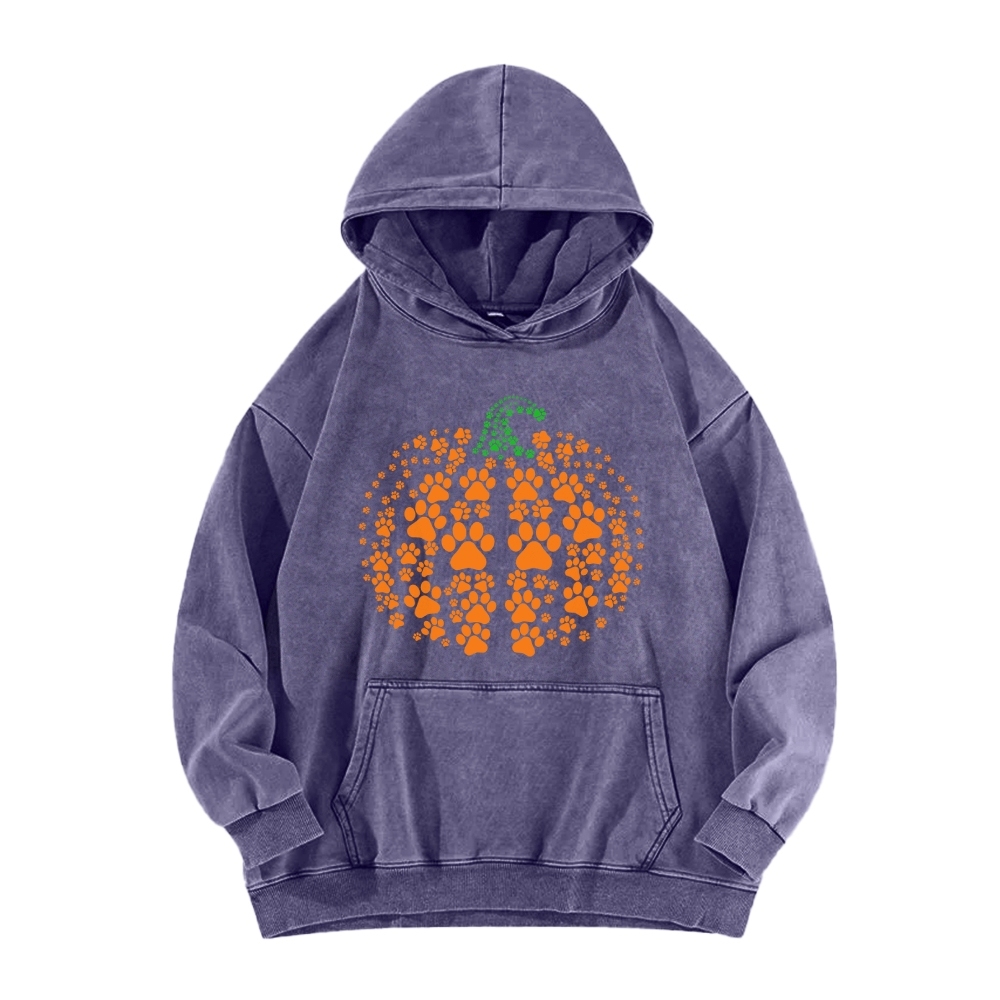 Tokyo-Assassin Cute Cat Pumpkin Vintage Washed Hoodie