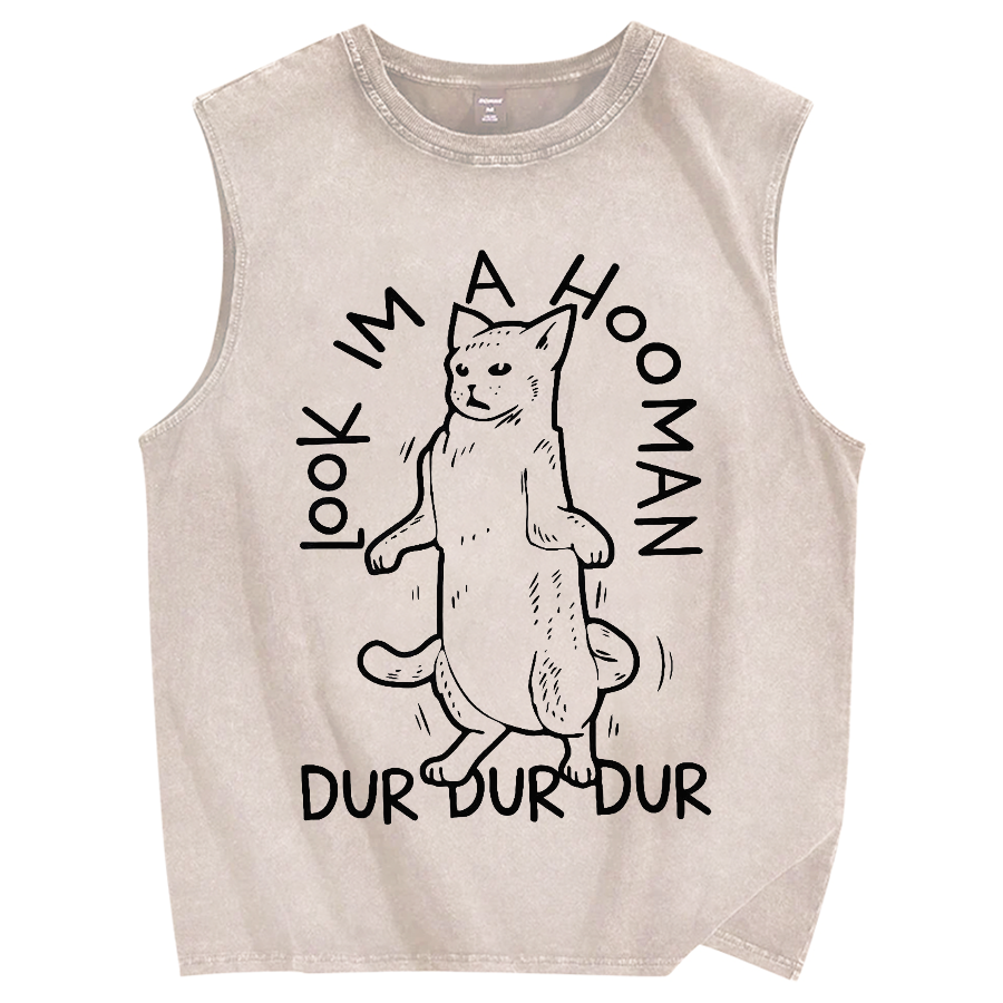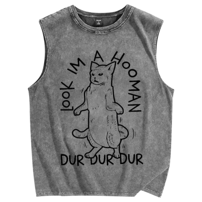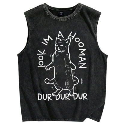 Tokyo-Assassin Dancing Cat Vintage Distressed Washed Tank Top