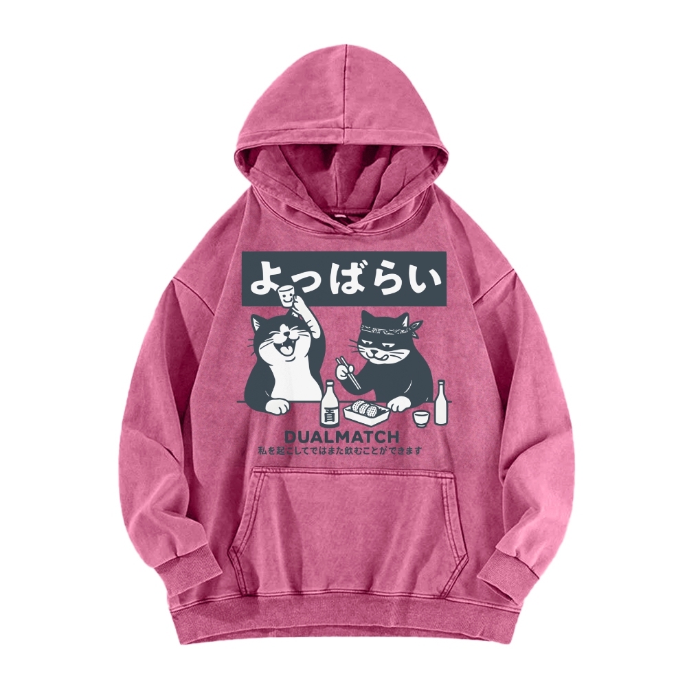 Tokyo-Assassin Drunken Cats Japanese Vintage Washed Hoodie