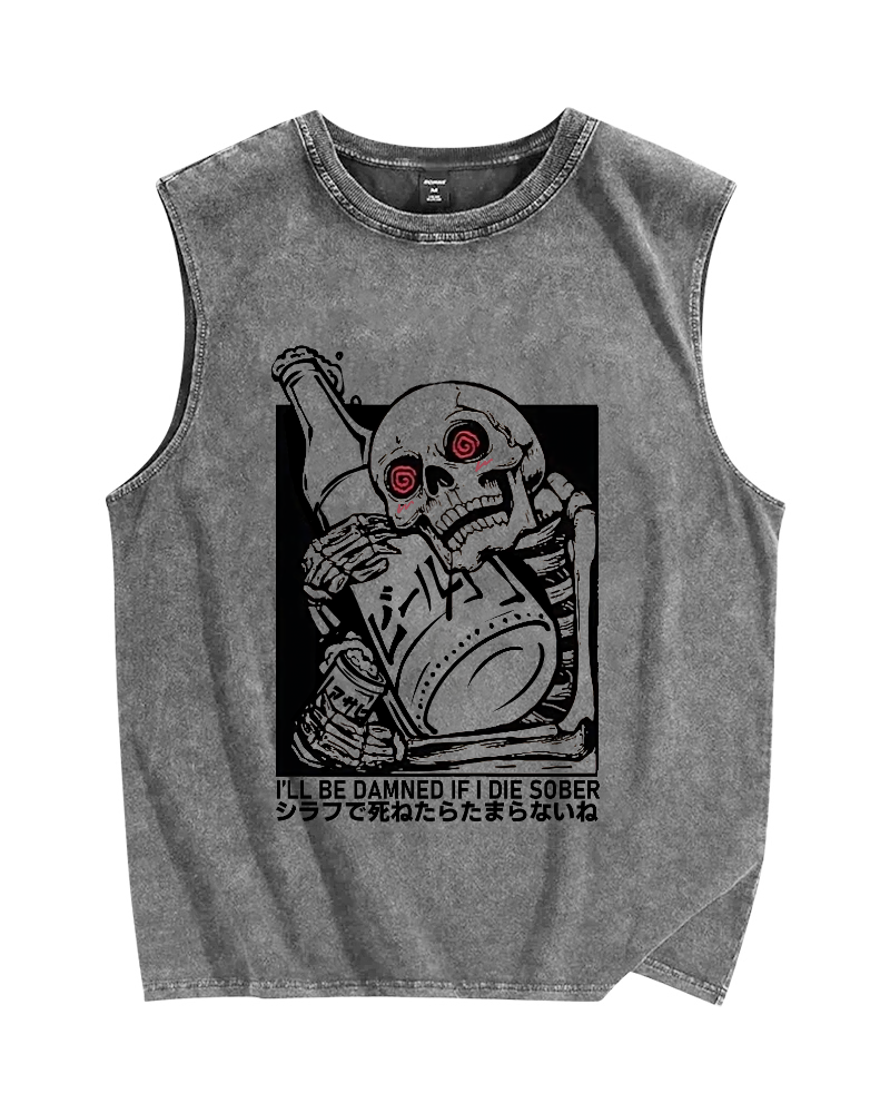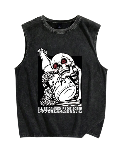 Tokyo-Assassin I'll Be Damned If I Die Sober Japanese Vintage Distressed Washed Tank Top