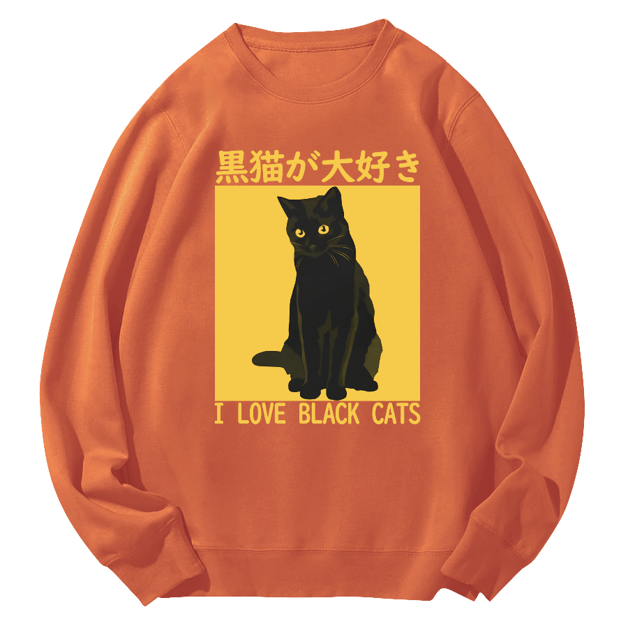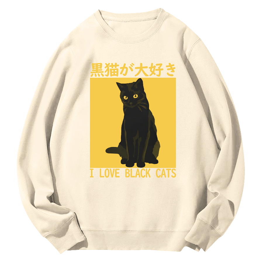 Tokyo-Assassin I like Japanese Style Black Cats Round Neck Sweatshirt
