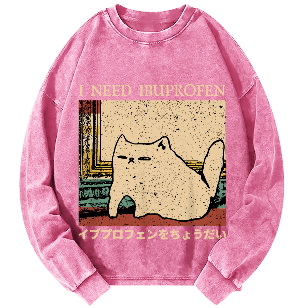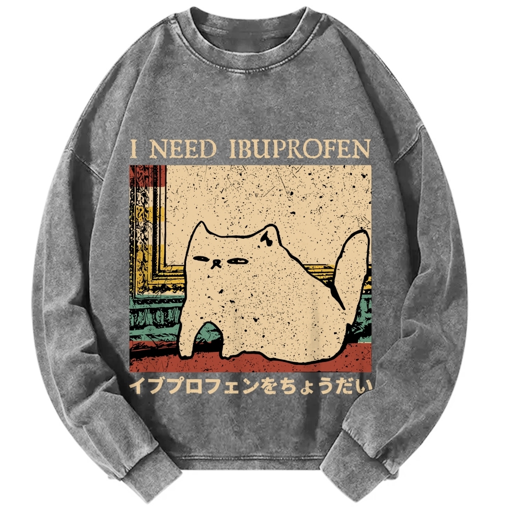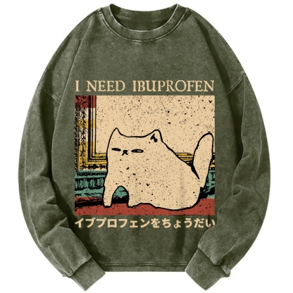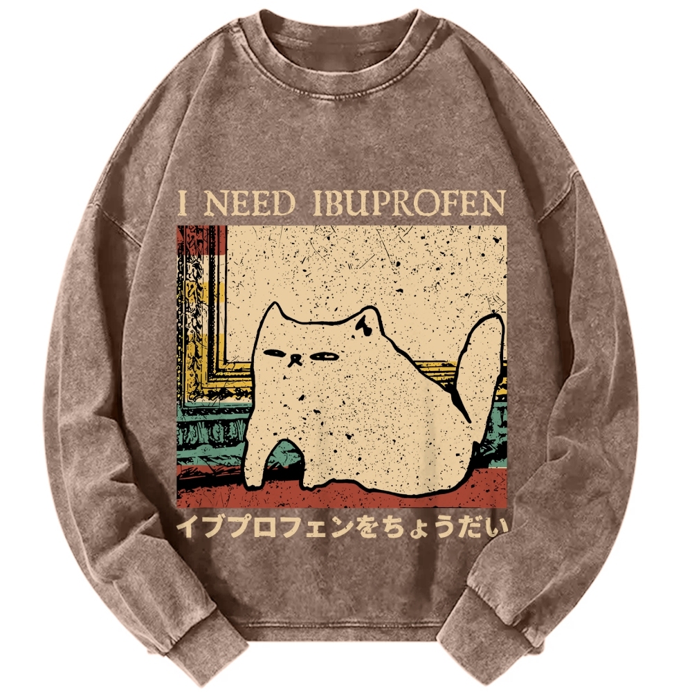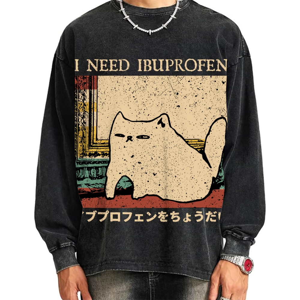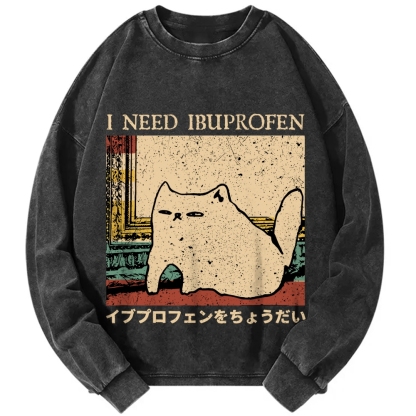 Tokyo-Assassin I Need Ibuprofen Cat Meme Vintage Washed Sweatshirts