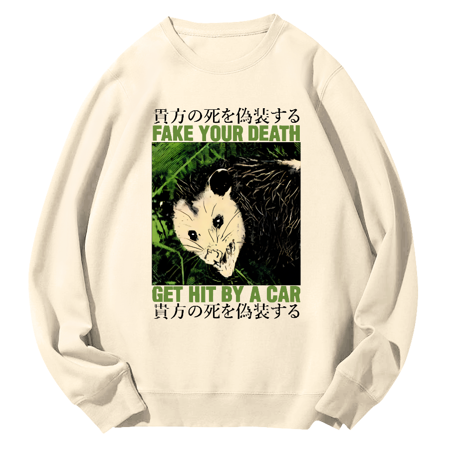 Tokyo-Assassin Japanese Style Opossums Disguised as Risking Their Lives Round Neck Sweatshirt
