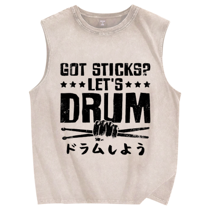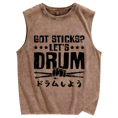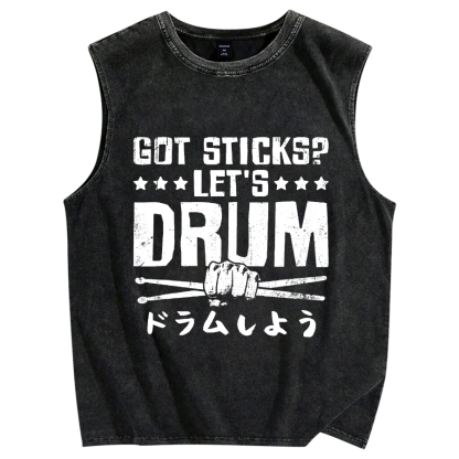 Tokyo-Assassin Let's Drum Vintage Distressed Washed Tank Top