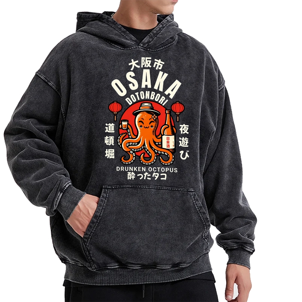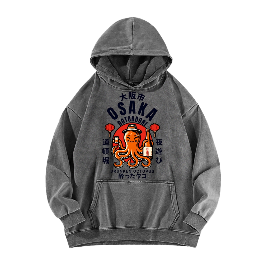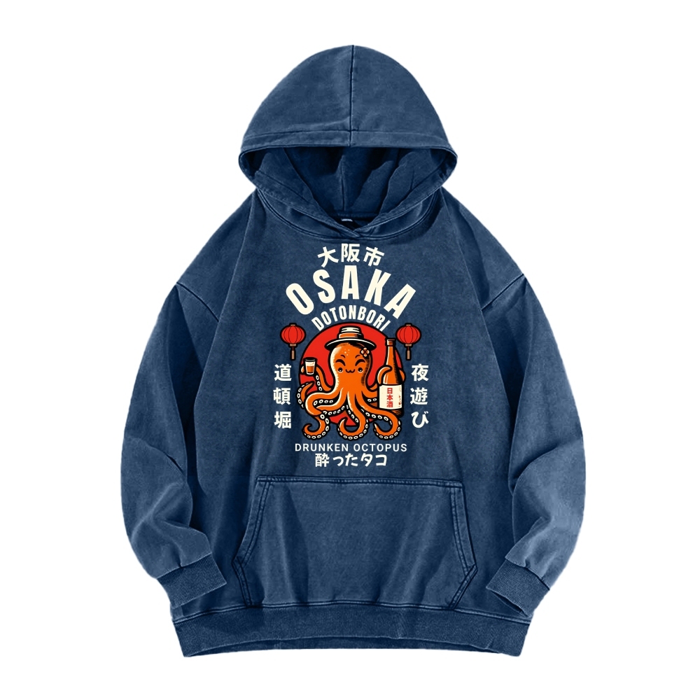 Tokyo-Assassin Osaka Drunken Octopus Vintage Washed Hoodie