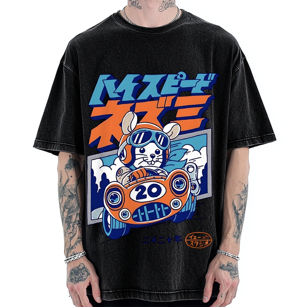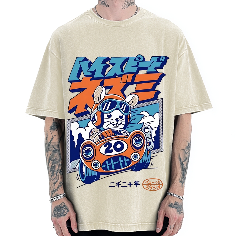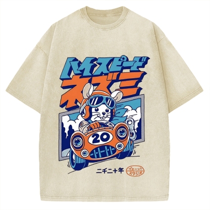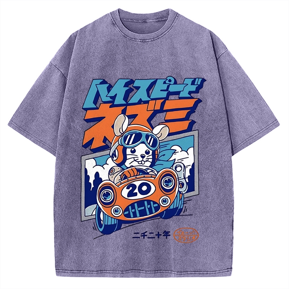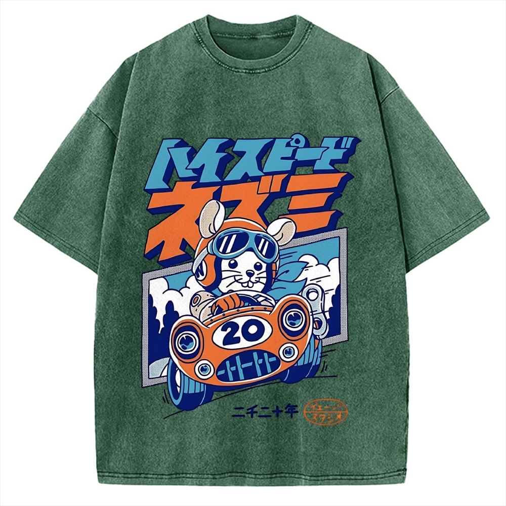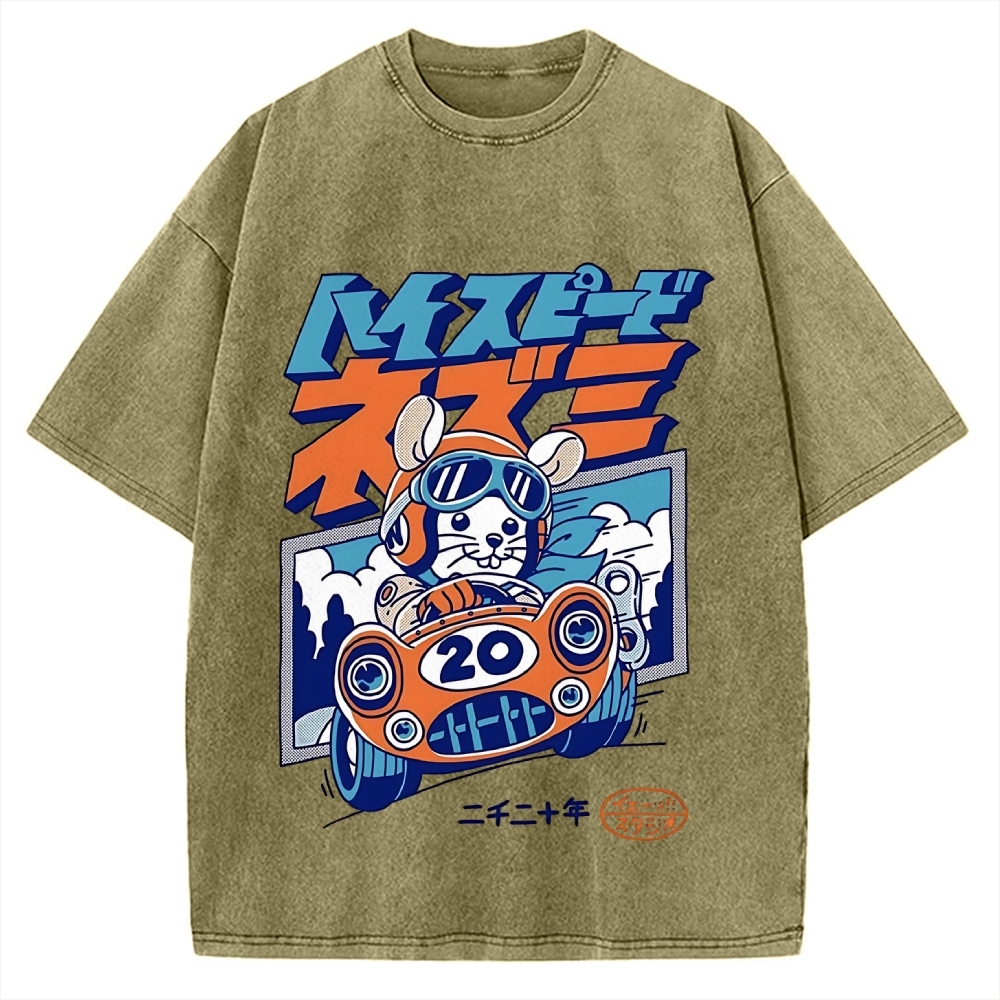 Tokyo-Assassin Racing Mouse Rat Funny Vintage Washed T-shirt