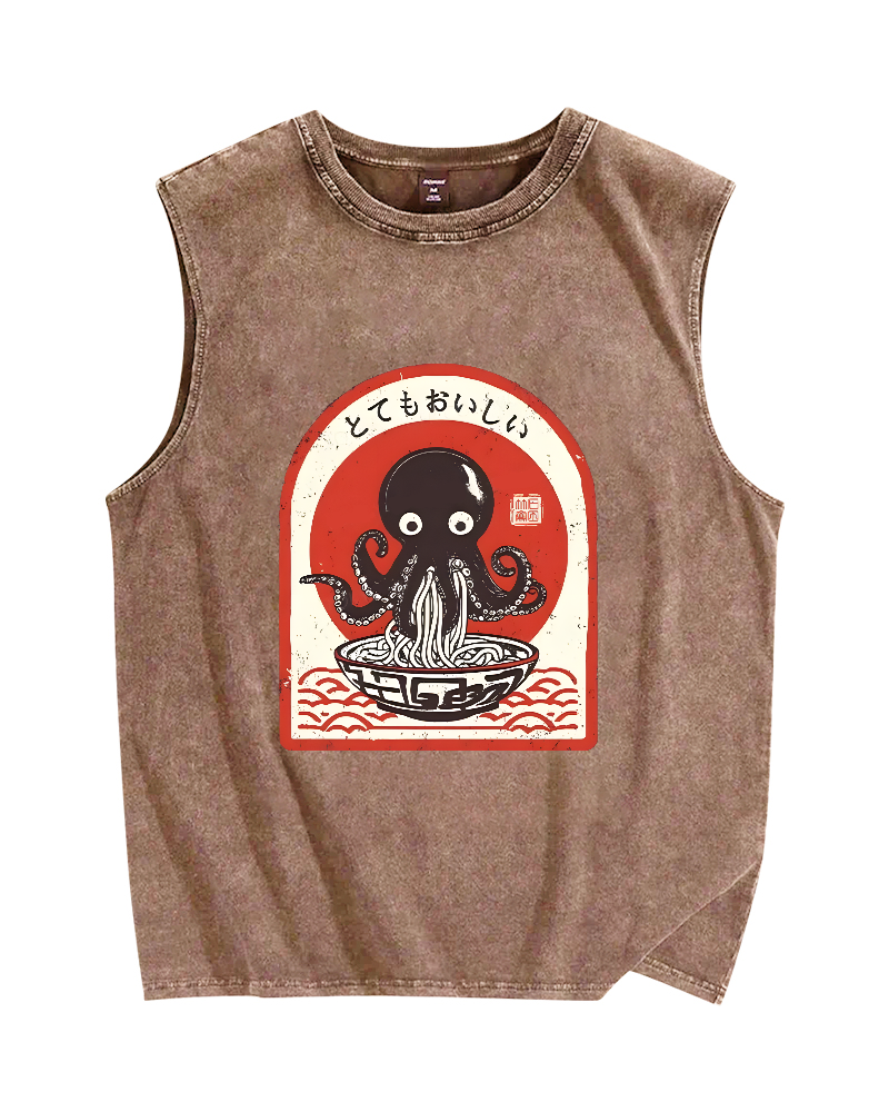 Tokyo-Assassin Ramen Lover Octopus Vintage Distressed Washed Tank Top