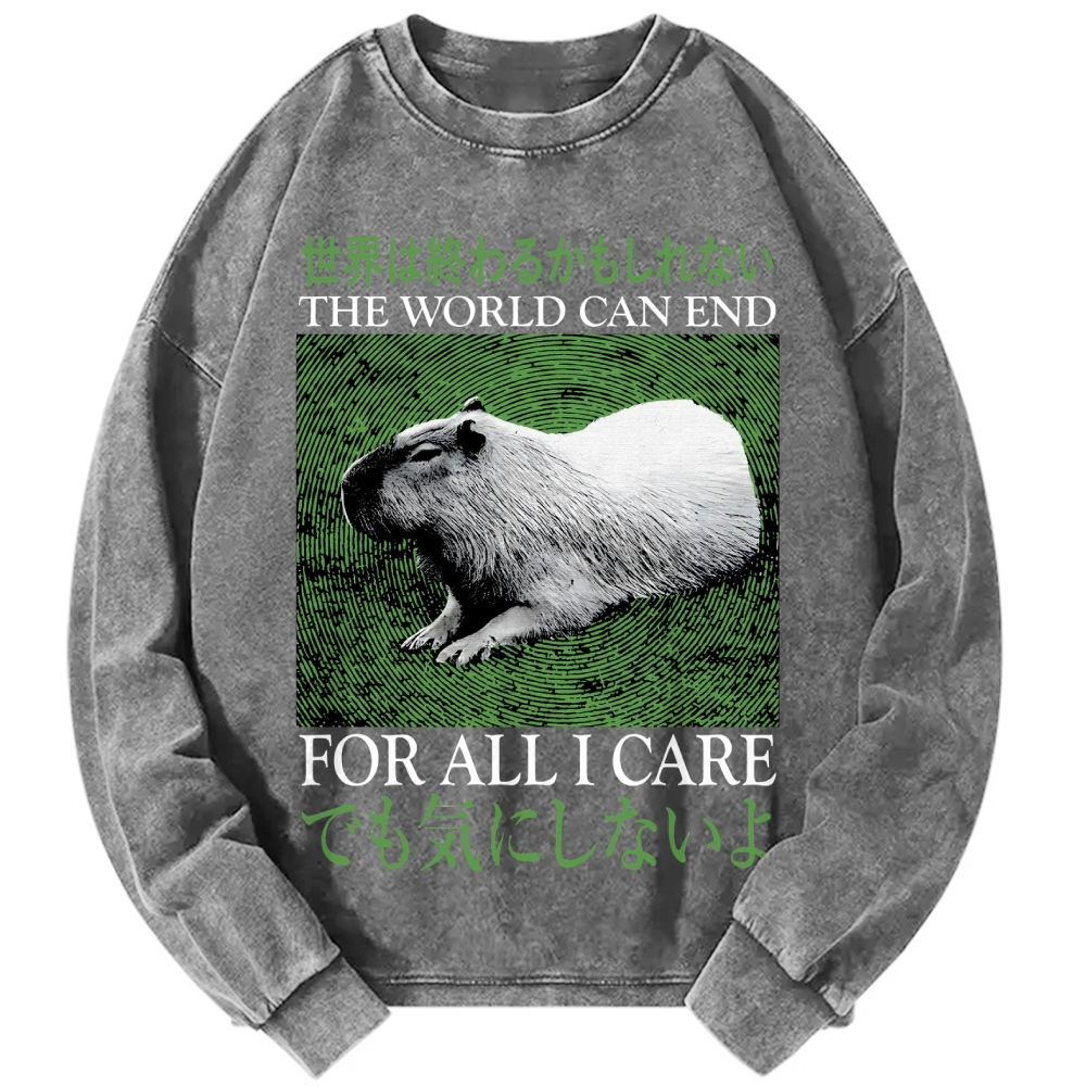 Tokyo-Assassin The World Can End Capybara Vintage Washed Sweatshirts