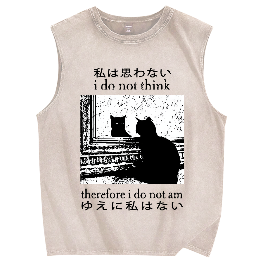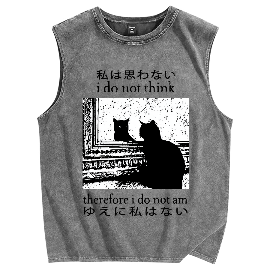 Tokyo-Assassin Thinking Cat Vintage Distressed Washed Tank Top