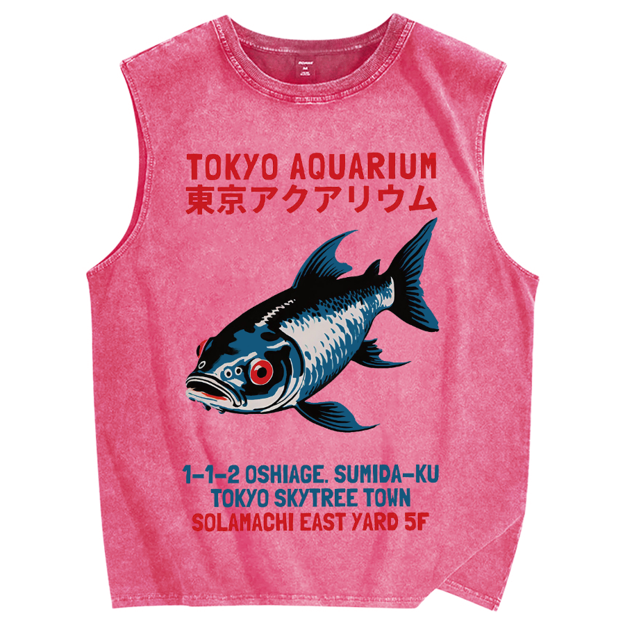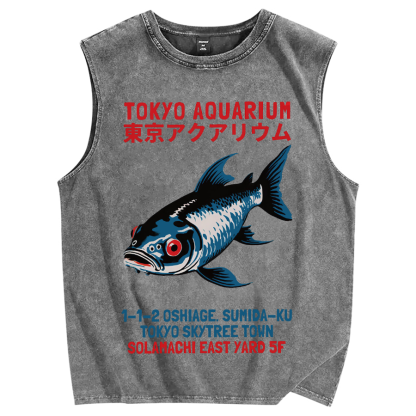 Tokyo-Assassin Tokyo Aquarium Japanese Vintage Distressed Washed Tank Top