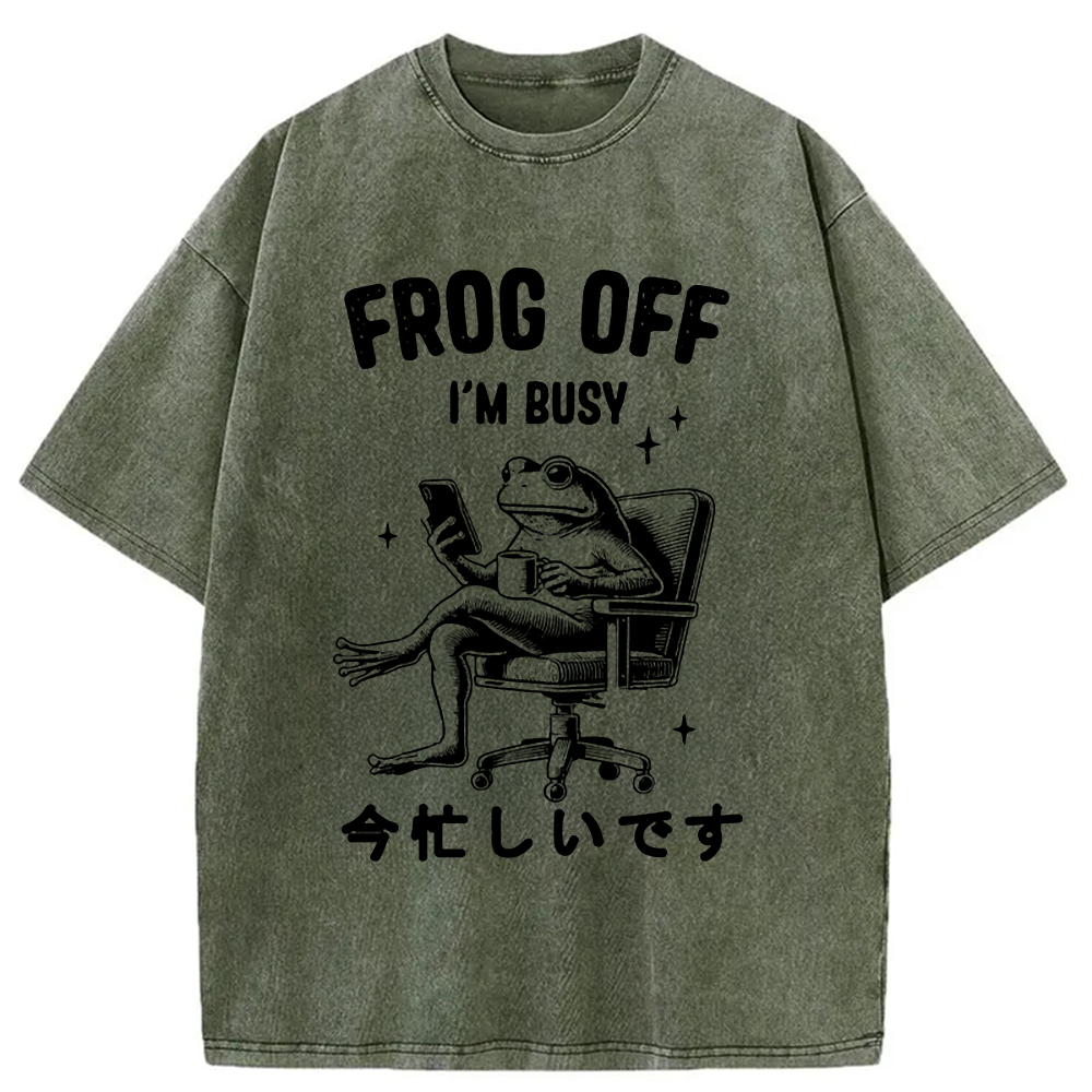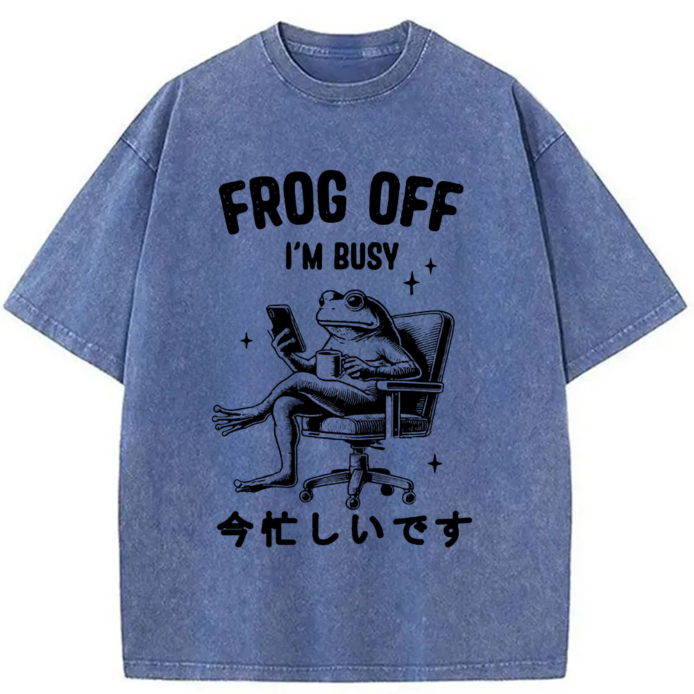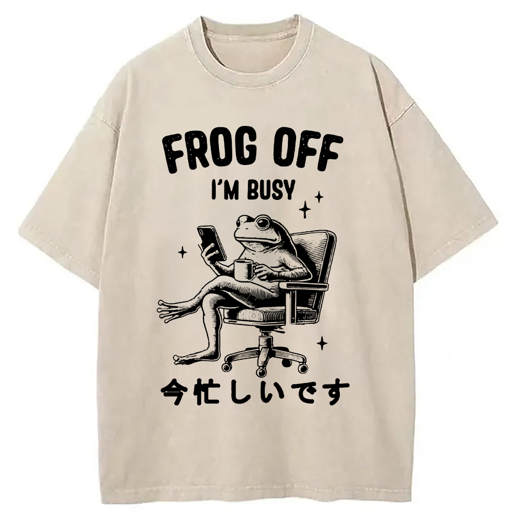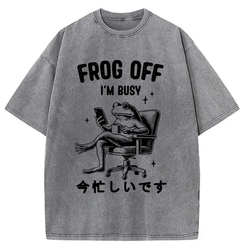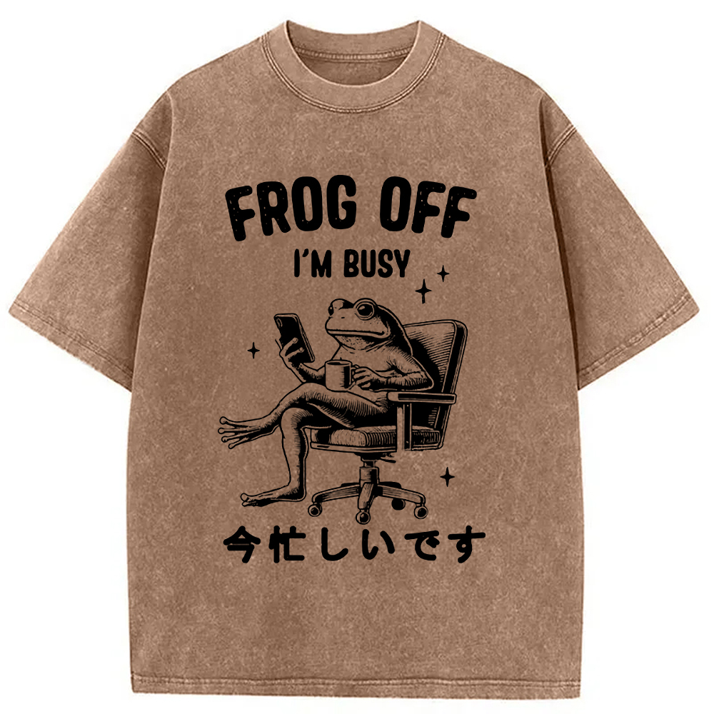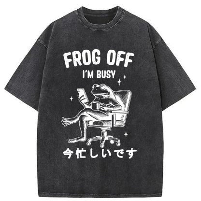 Tokyo-Assassin Busy Frog Funny Washed T-Shirt