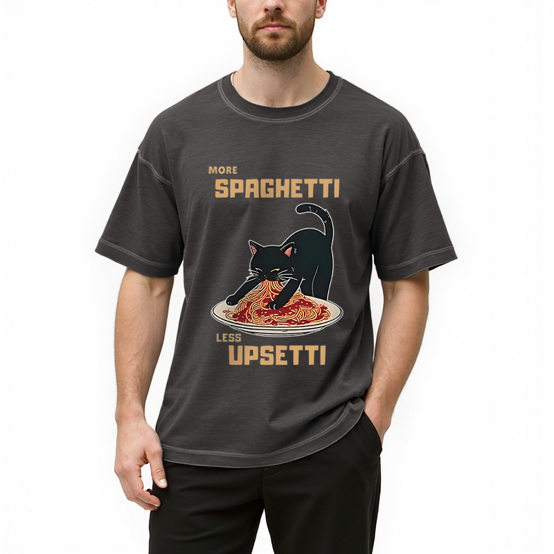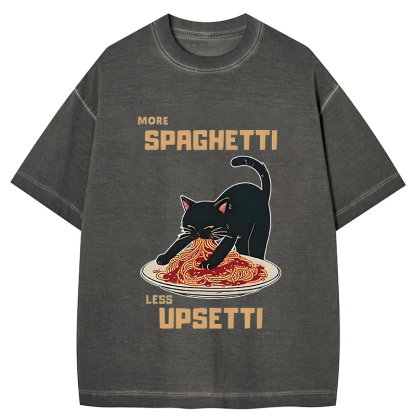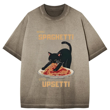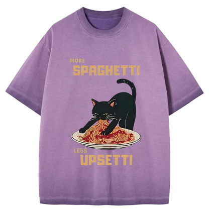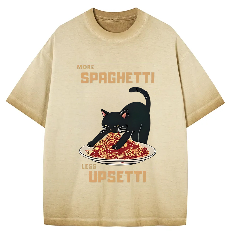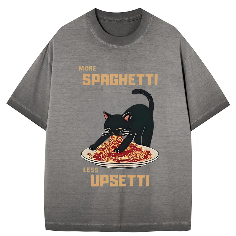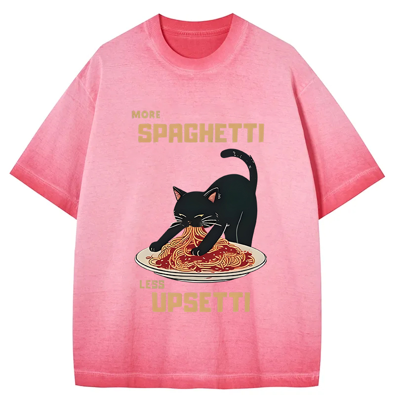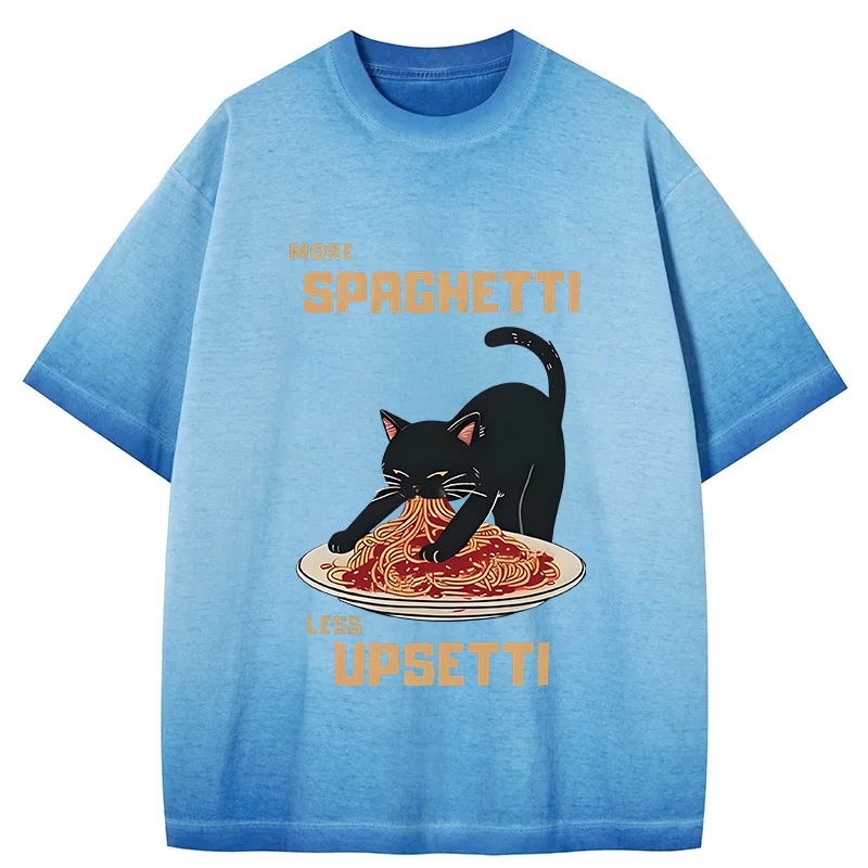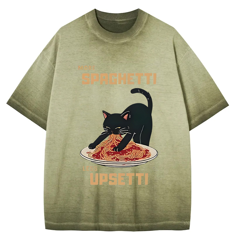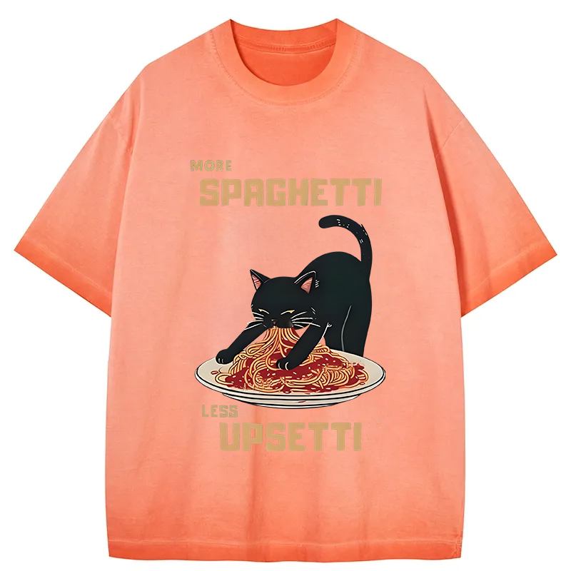 Tokyo-Assassin Cat Eating Spaghetti Funny Gradient Washed T-Shirt