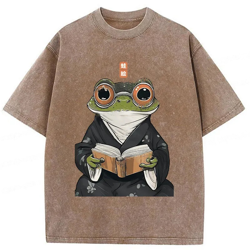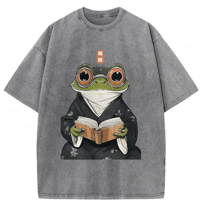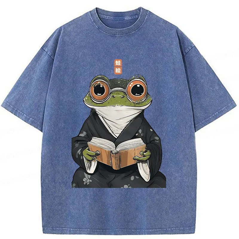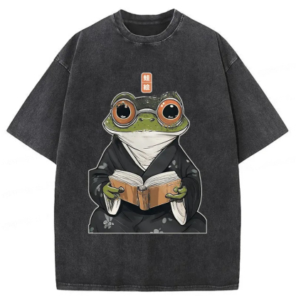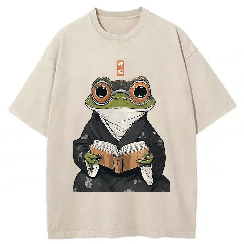 Tokyo-Assassin Frog Reading Washed T-Shirt