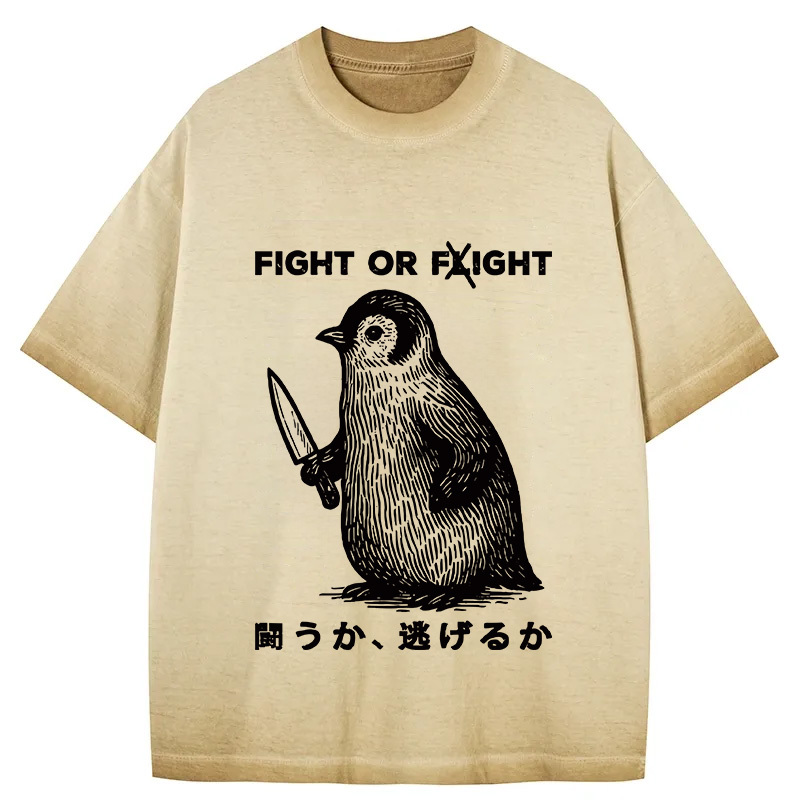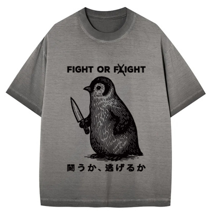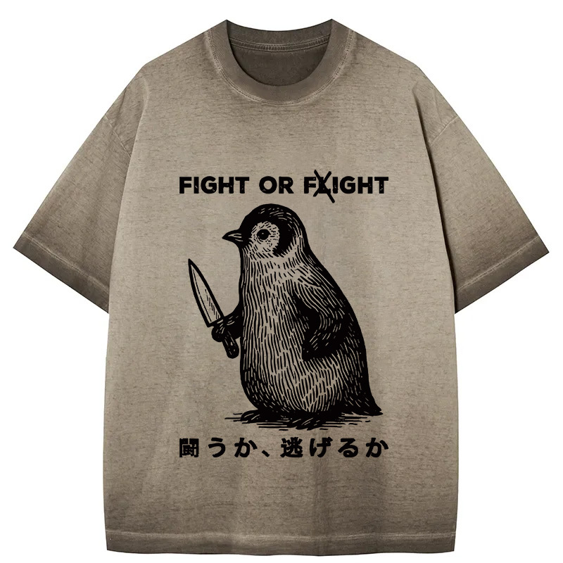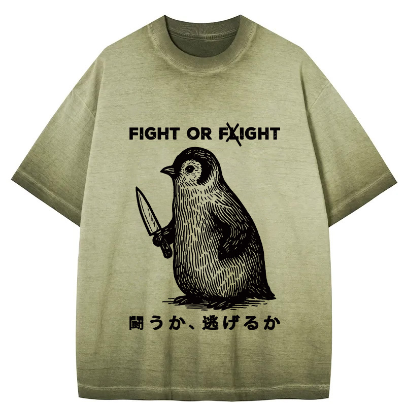 Tokyo-Assassin Funny Fight Or Flight Gradient Washed T-Shirt
