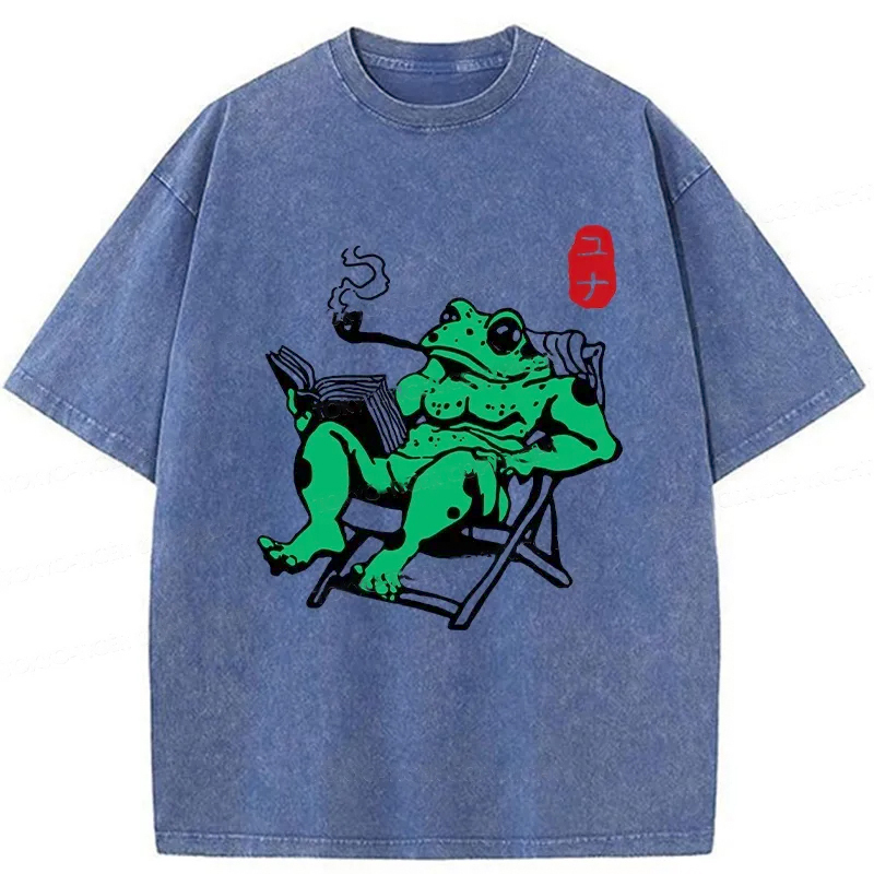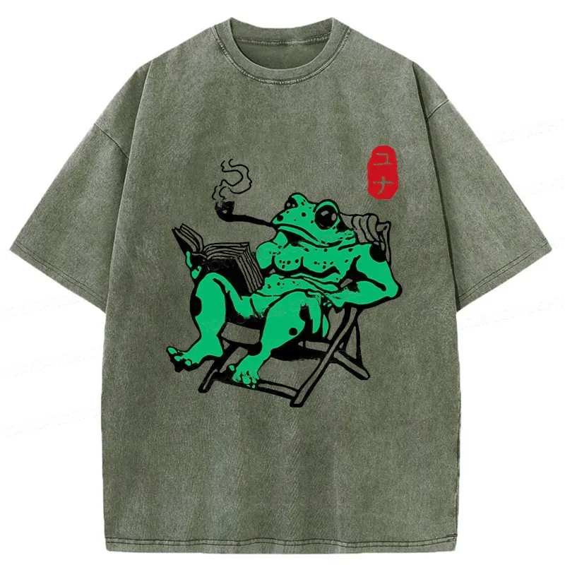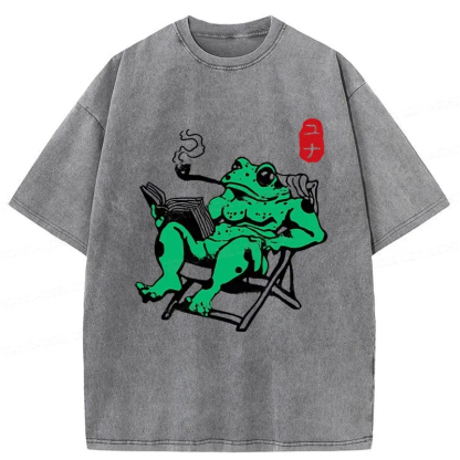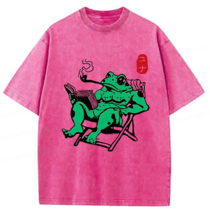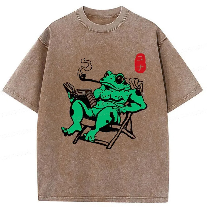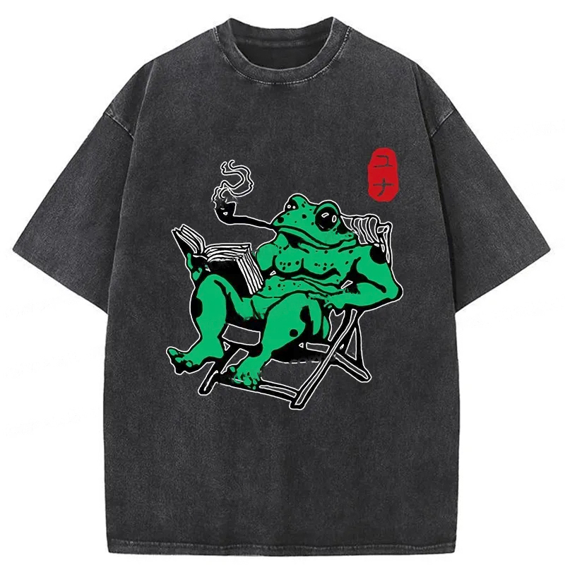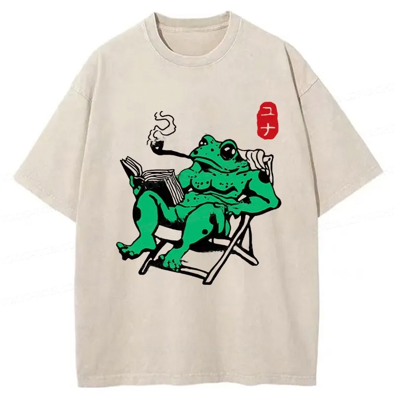 Tokyo-Assassin Muscle Frog Reading Washed T-Shirt