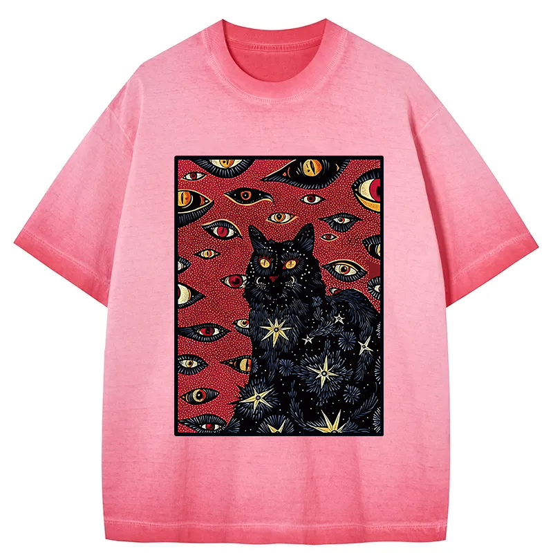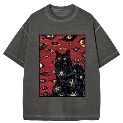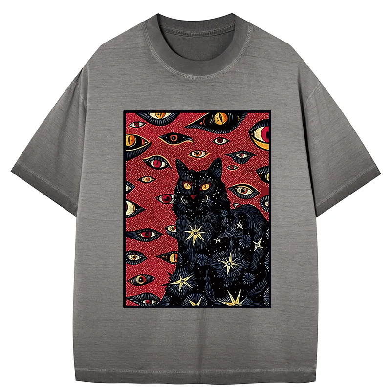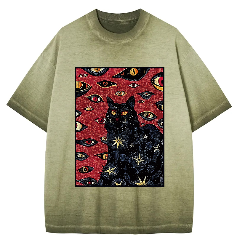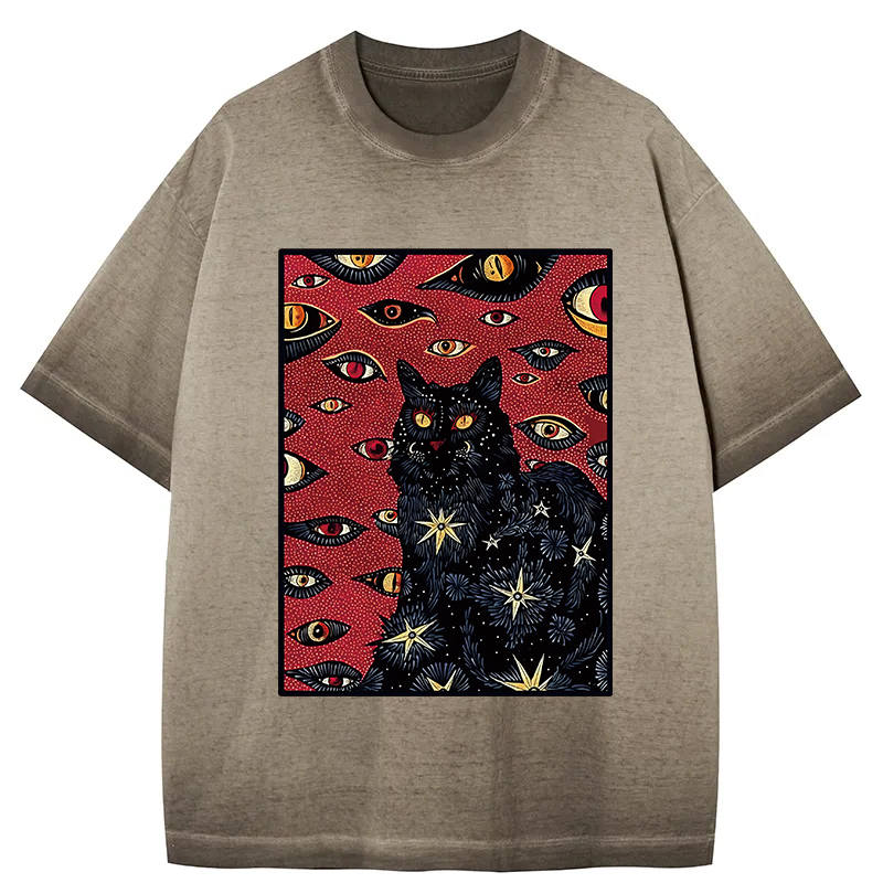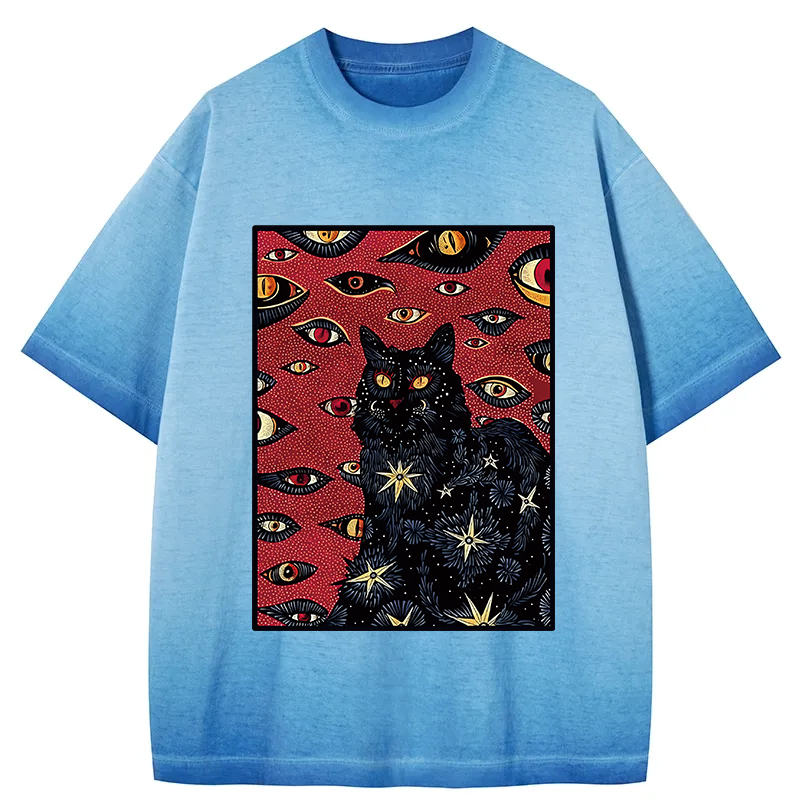 Tokyo-Assassin Mysterious Cat Gradient Washed T-Shirt