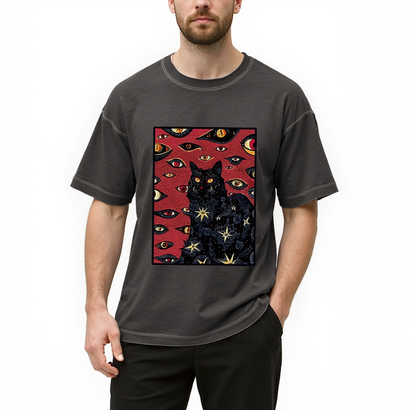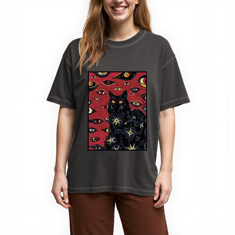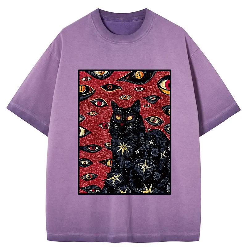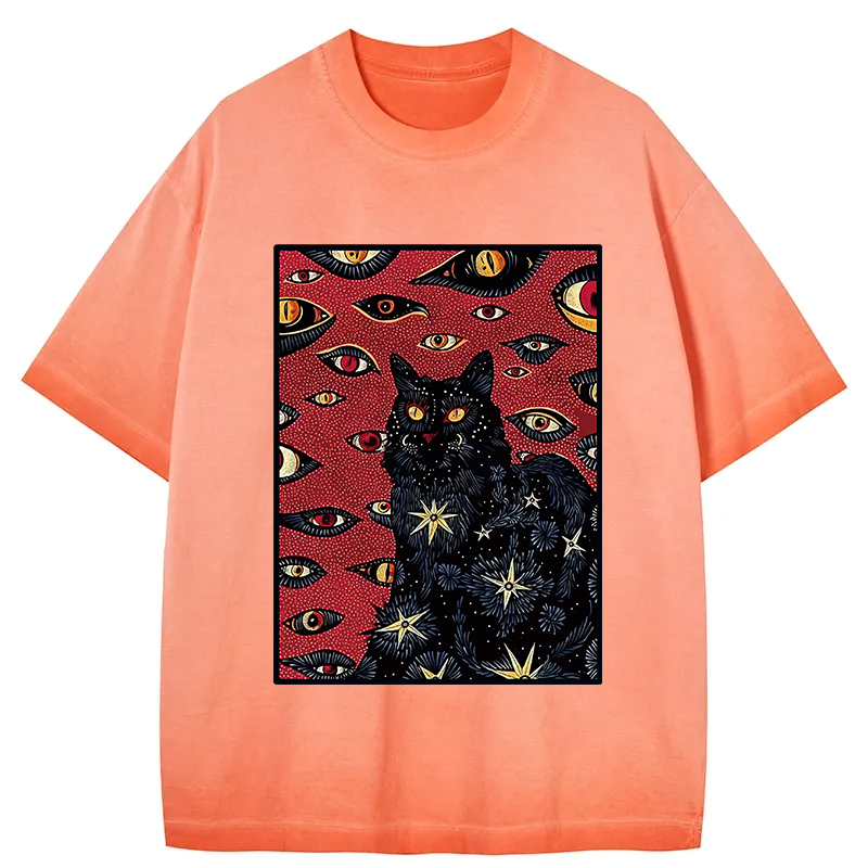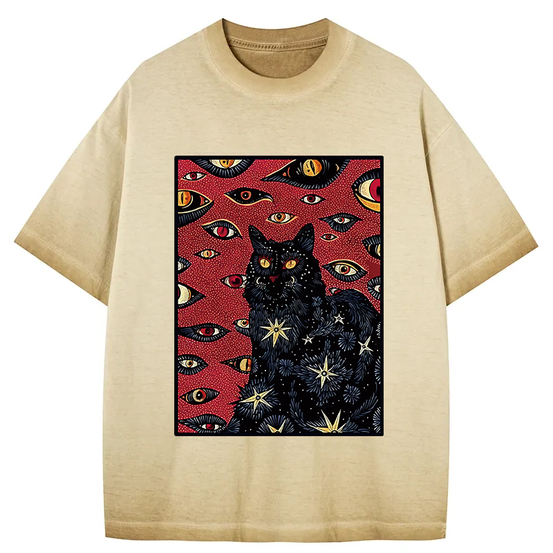 Tokyo-Assassin Mysterious Cat Gradient Washed T-Shirt