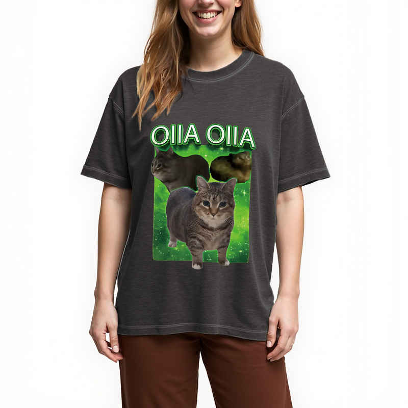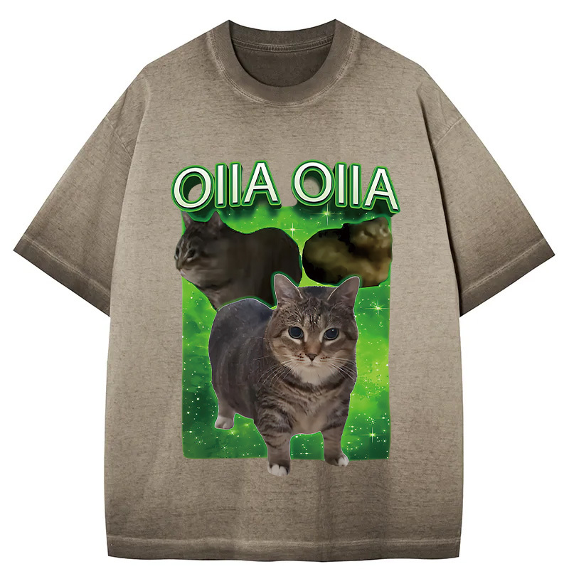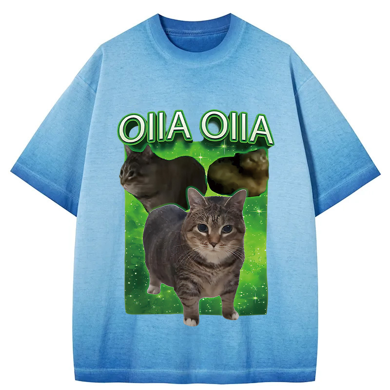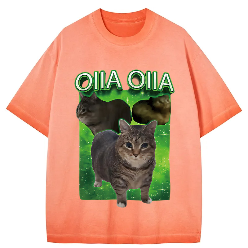 Tokyo-Assassin Oiia Cat Funny Meme Gradient Washed T-Shirt