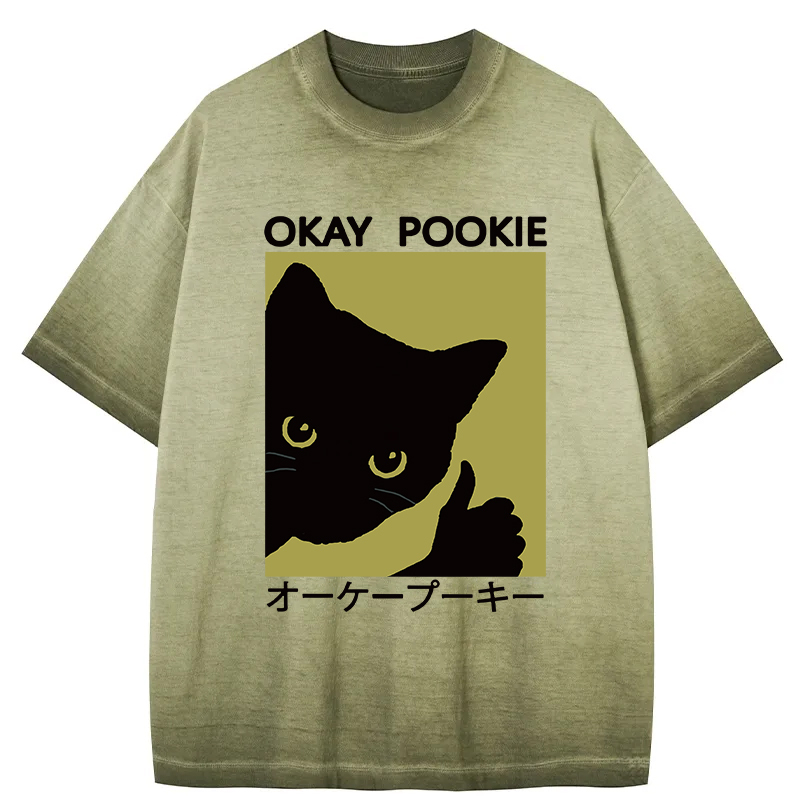 Tokyo-Assassin Okay Pookie Cat Gradient Washed T-Shirt