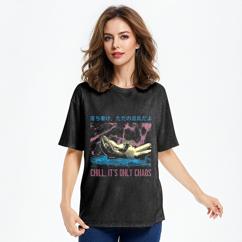 Tokyo-Assassin Stay Calm Frog Japanese Washed T-Shirt