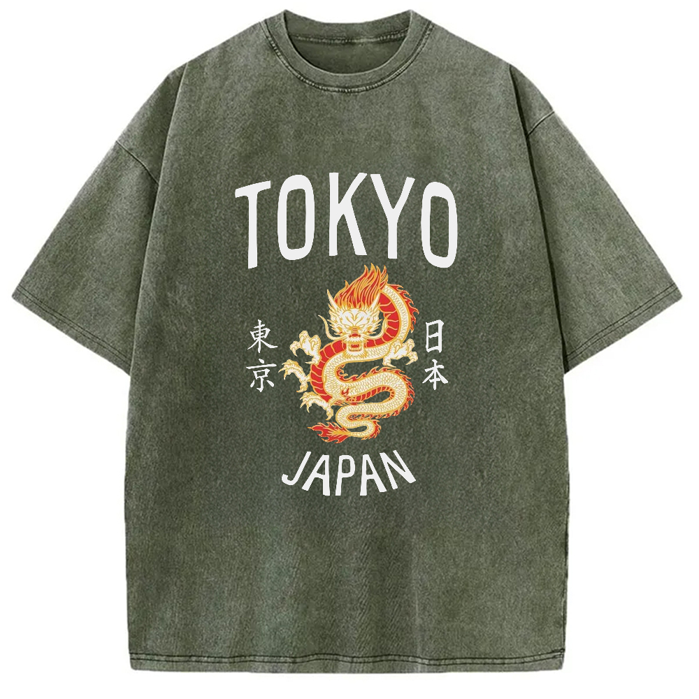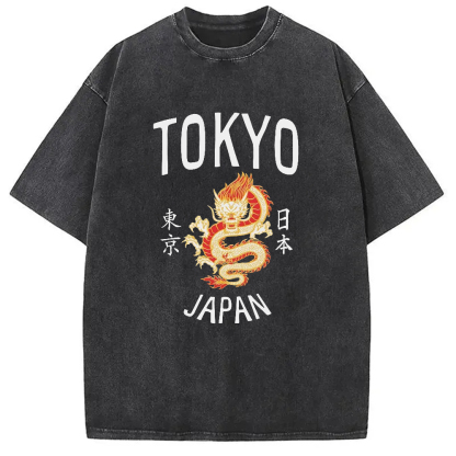 Tokyo-Assassin Tokyo Japan Dragon Washed T-Shirt