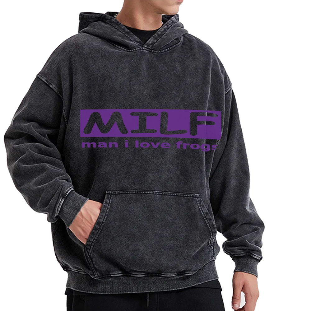 Tokyo-Assassin Man I Love Frogs Funny joke Vintage Washed Hoodie