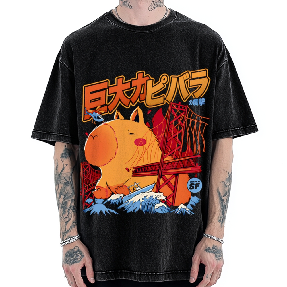 Tokyo-Assassin Capybara Monster attack Vintage Washed T-shirt